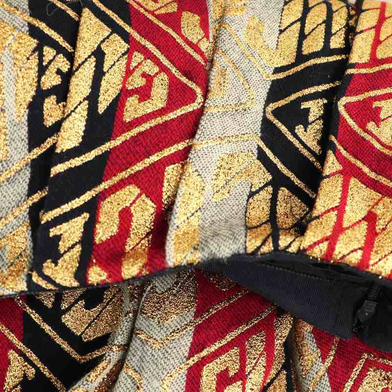 グッチ GUCCI 524386 ゲームロゴ ジャガード タックスカート フレアスカート ラメ メタリック 36 レッド マルチカラー /ES レディース