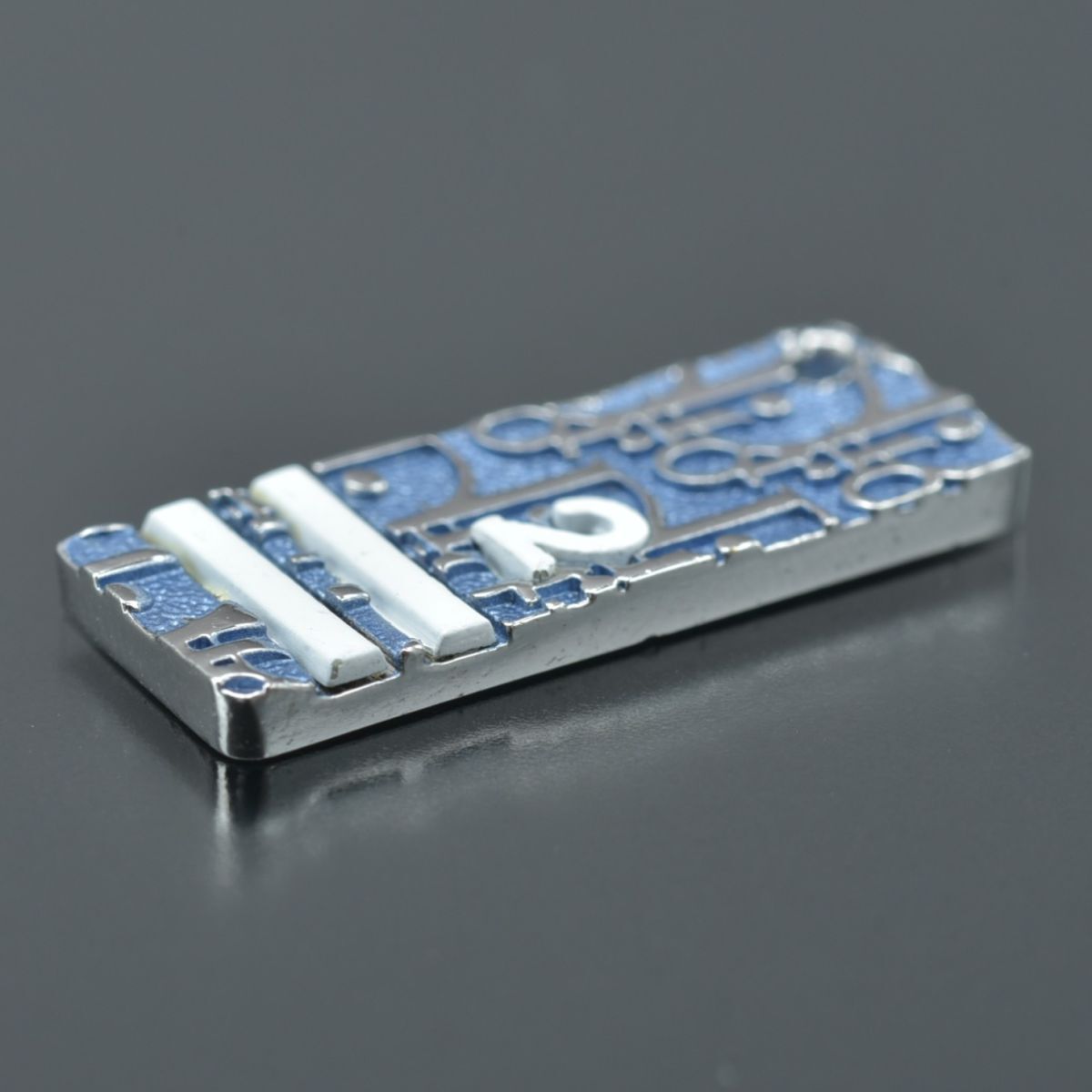 美品 ディオール ネックレストップ トロッター シルバー ブルー スクエア Christian Dior チャーム アクセサリー ブランド #N※B997