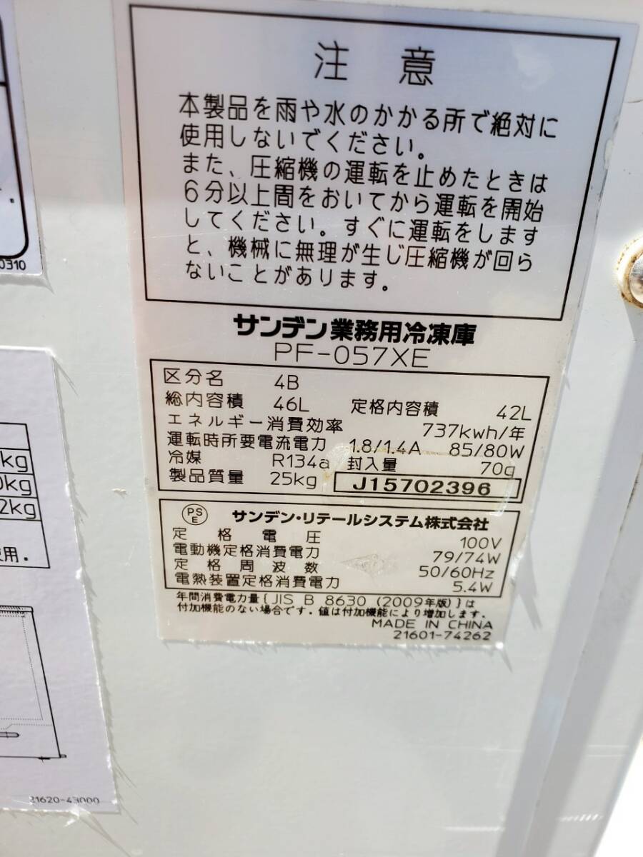 ■メーカー:サンデン ■型番:PF-057XE ■サイズ(約):W490×D305×H865㎜ ■電源:単相100V ★動作確認済(-20℃) ☆写真に写っているものが全てです。 ☆神経質な方のご入札はご遠慮下さい。 ☆中古品ですが状態はキレイです。多少の傷・汚れ・使用感はあります。画像をよくご確認の上、ご理解を頂ける方のご入札をお願いいたします。 |