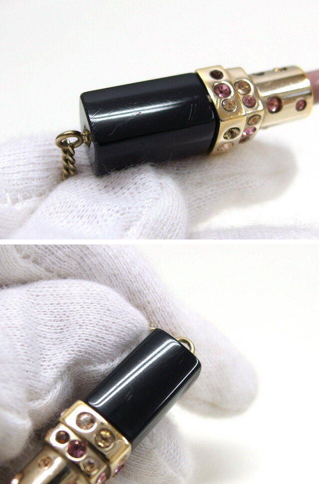 商品ランク | [中古A] 刻印に若干メッキ剥がれ、リップモチーフにスレ・小傷・若干クスミ・薄汚れ(先端)、ラインストーンに微細なスレ・小傷・欠け、ココマークに微細なスレ・小傷・若干メッキ剥がれ・変色がございますが、目立つ傷や汚れはなく、きれいな商品です。 |