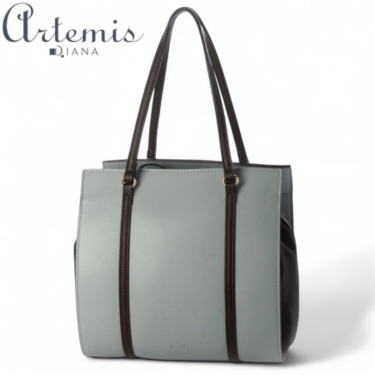 上品なブルー合皮スムースとナイロン素材の異素材ミックスが目を惹く、アルテミスbyダイアナ「HALIN」トートバッグです。