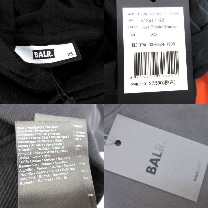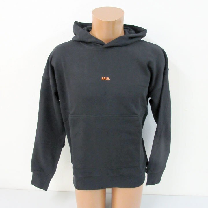 定価27500円の1万円引ボーラーBALR.新品タグ付オーバーサイズパーカー黒橙でかロゴバックプリントXS芸能人御用達ブランド(qz13217)