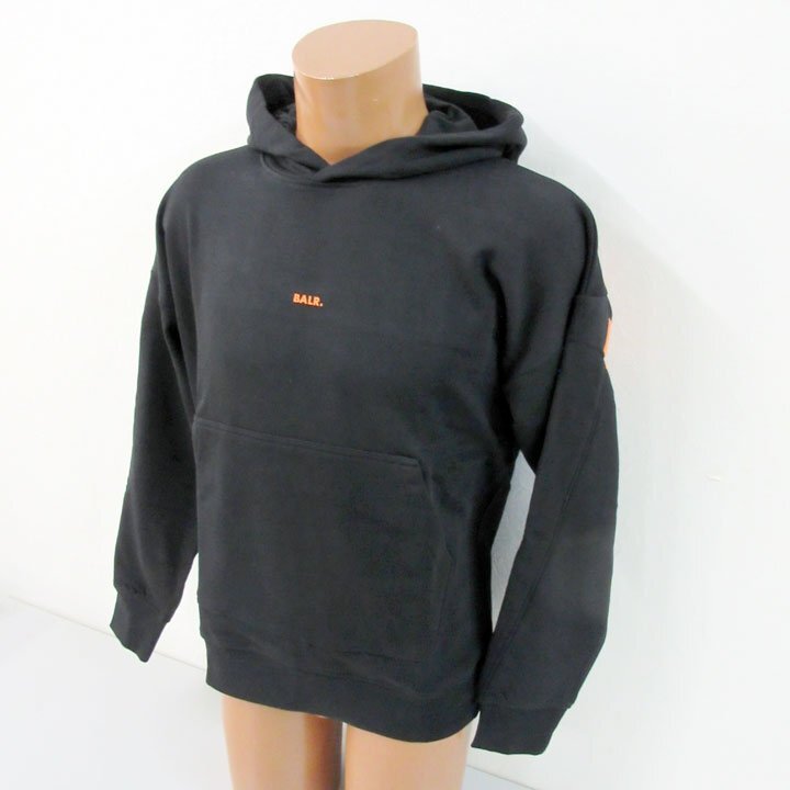 定価27500円の1万円引ボーラーBALR.新品タグ付オーバーサイズパーカー黒橙でかロゴバックプリントXS芸能人御用達ブランド(qz13217) |