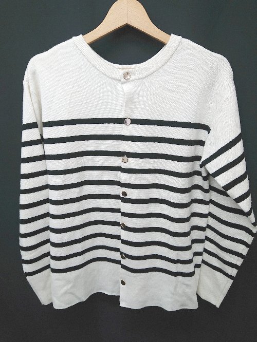 ◇ ⊇ ROPE PICNIC ロペピクニック ボーダー 長袖 ニット カーディガン サイズ38 ホワイト ブラック レディース E
