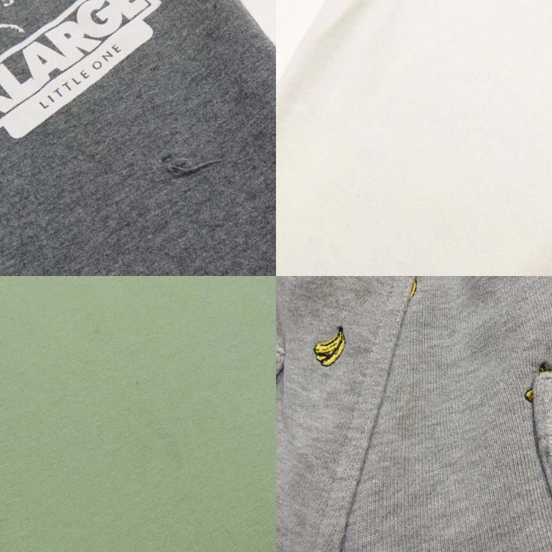 | 状態 | スウェットパンツの膝に穴、その他いずれも所々に汚れ、USED独特のスレや使用感が見受けられます。 |