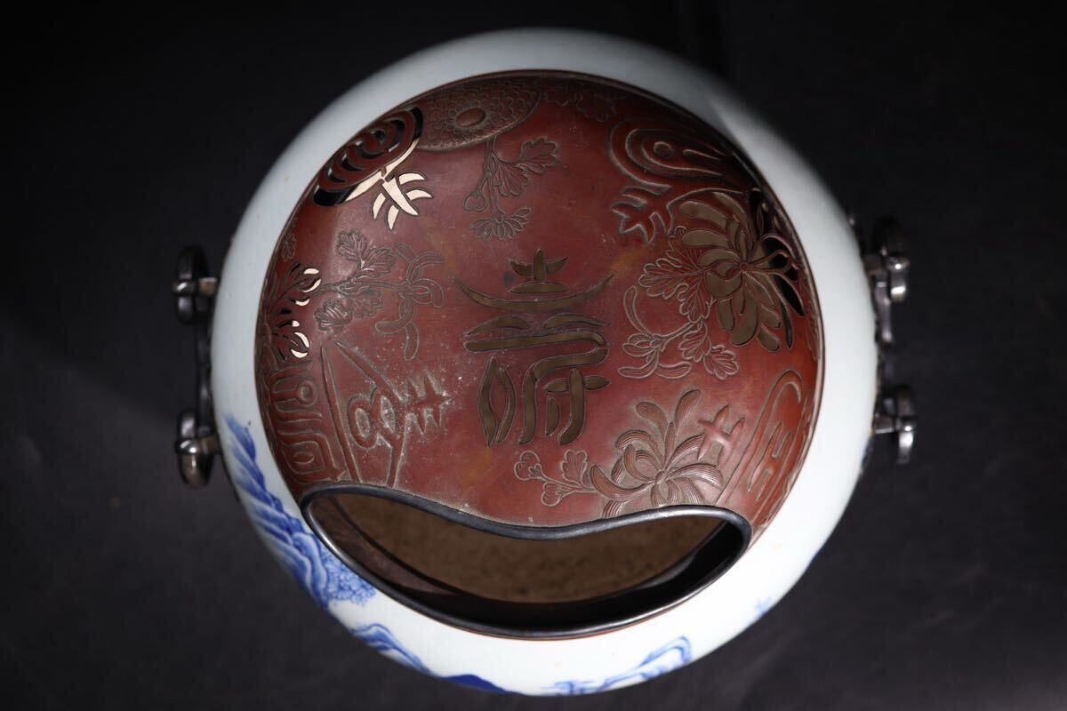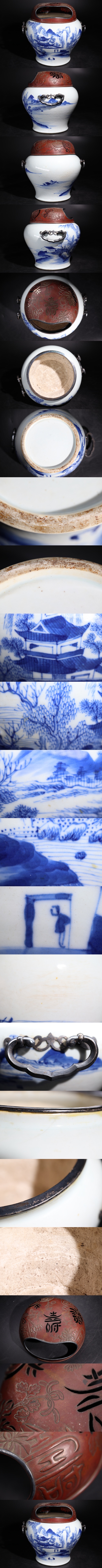 | 時代 染付 山水図 香炉 清代 頃 / 中国美術 香道具 煎茶道具 金工 彫金 火屋 検索: 古染付 祥瑞.G2028 |