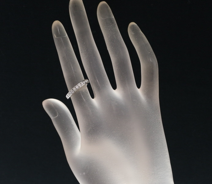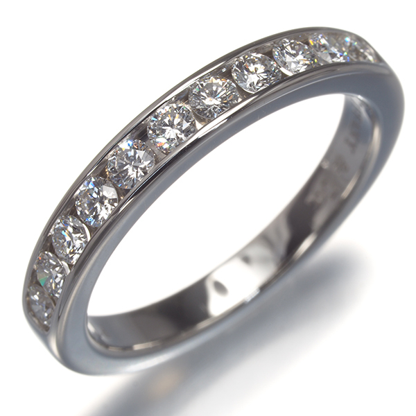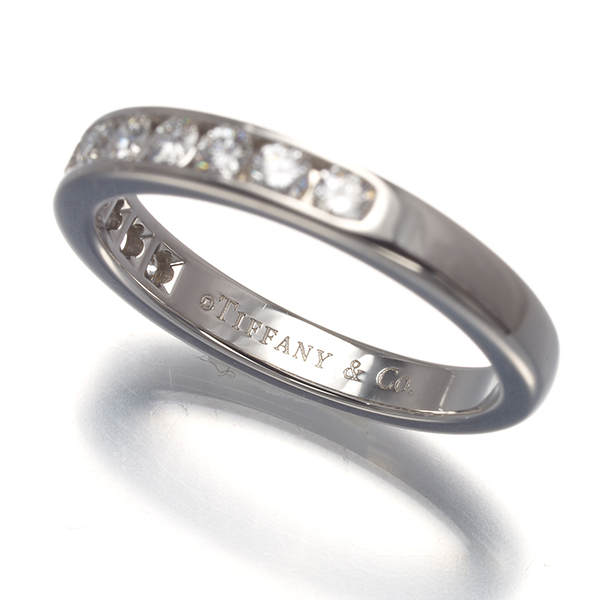 厳選ダイヤモンドの眩く瑞々しさ溢れる輝きをレールセッティングで演出したティファニーのバンドリングです。 |