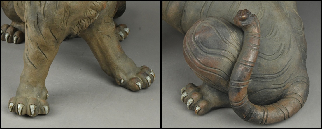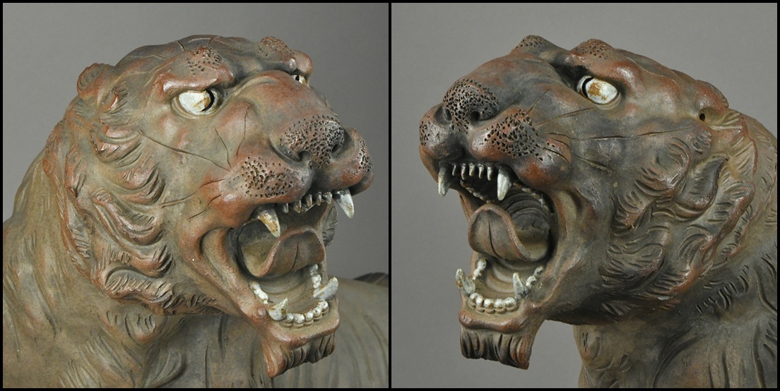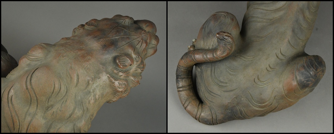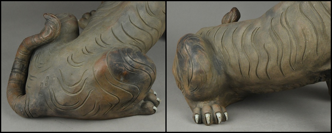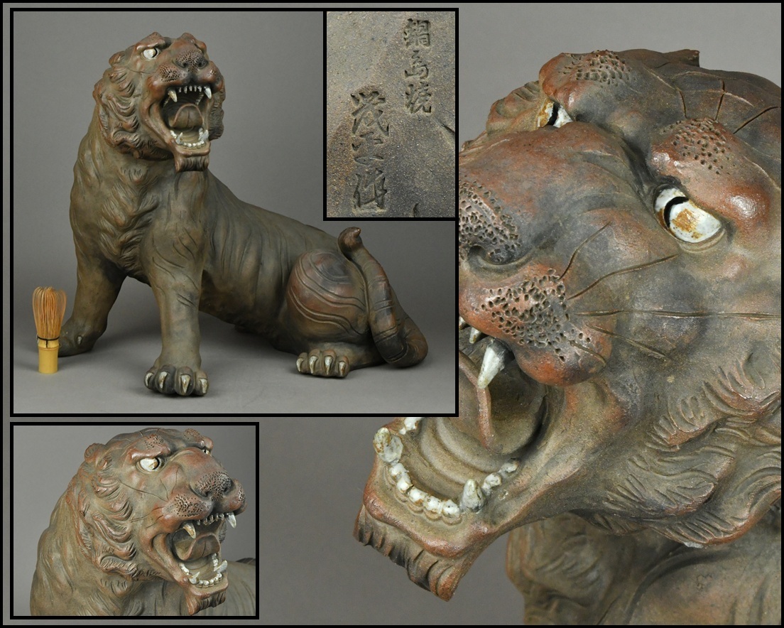 | 《品 名》:鍋島焼 名工【幾平作】特大 虎 細密彫 置物 古美術品 幅51cm 《寸 法》:高さ 約 44cm 幅 約 51cm 行 約 33.5cm 《総重量》:ーg 《状 態》:経年や使用による汚れやスレ、小キズなどがございます。 画像をよくご確認ください。 骨董品、アンティークなため掃除などしておりません。ご了承ください。 使われているパソコンのディスプレイの状態により、実物と色合いが若干異なることがあります。 中古品とご理解の上ご入札をお願い致します。 | |||