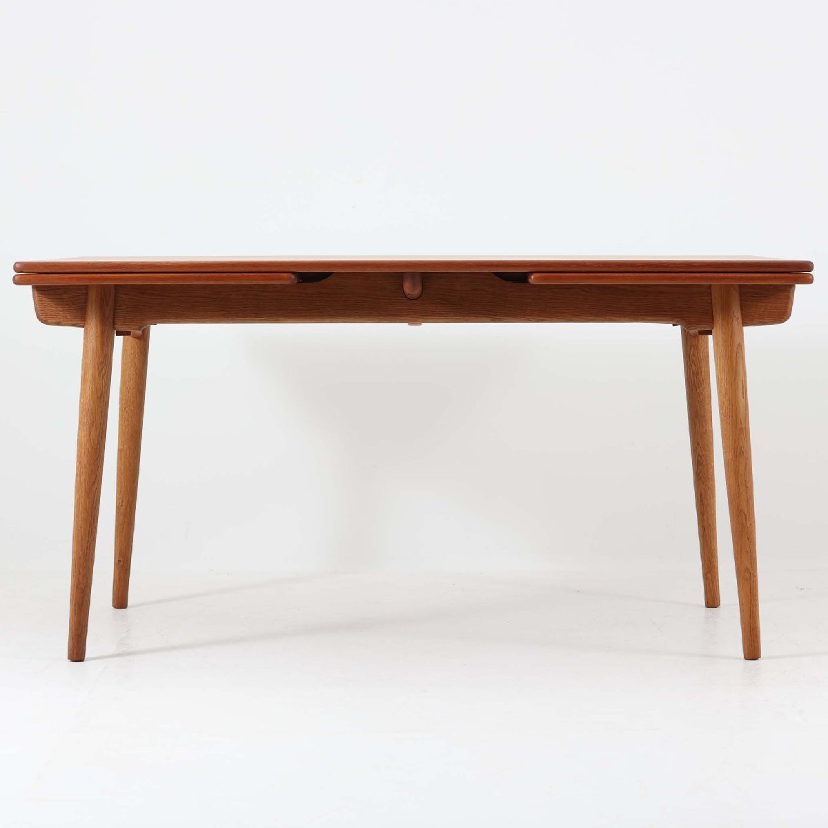 コンディション | 天板に黒く焦げたような跡や輪染みがあり、端に膨らみが見られる箇所があります。また、天板と拡張板で色味の違いがあり、天板の反りによるわずかなガタつきも見られます。メンテナンスを施しておりますので、ある程度きれいな状態にはなっておりますが、全体的にダメージが多く、コンディションはあまり良くありません。使用感も見受けられます。そのため、価格に反映させていただいております。 ※ビンテージ品です。お伝えしきれない細かい傷や使用感等が御座います。ご了承下さいませ。 「メンテナンス内容」 全体にサンディングを施しています。拡張板には着色を施し、天板および拡張板にはラッカー塗装を、全体にはオイル塗装を施しています。 |