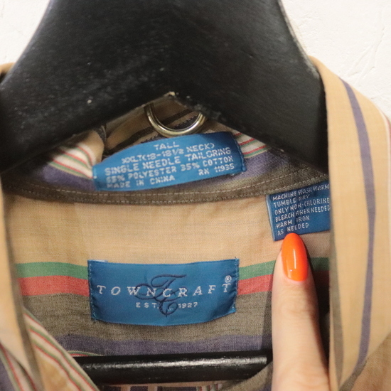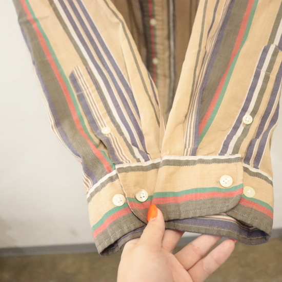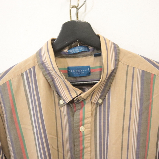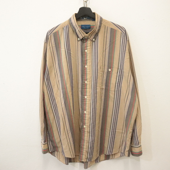 商品名 d710 2000年代製 TOWNCRAFT タウンクラフト 長袖シャツ■00s 表記2XLサイズ ブラウン アメカジ ストライプ ボタンダウン 古着卸 古着 90s