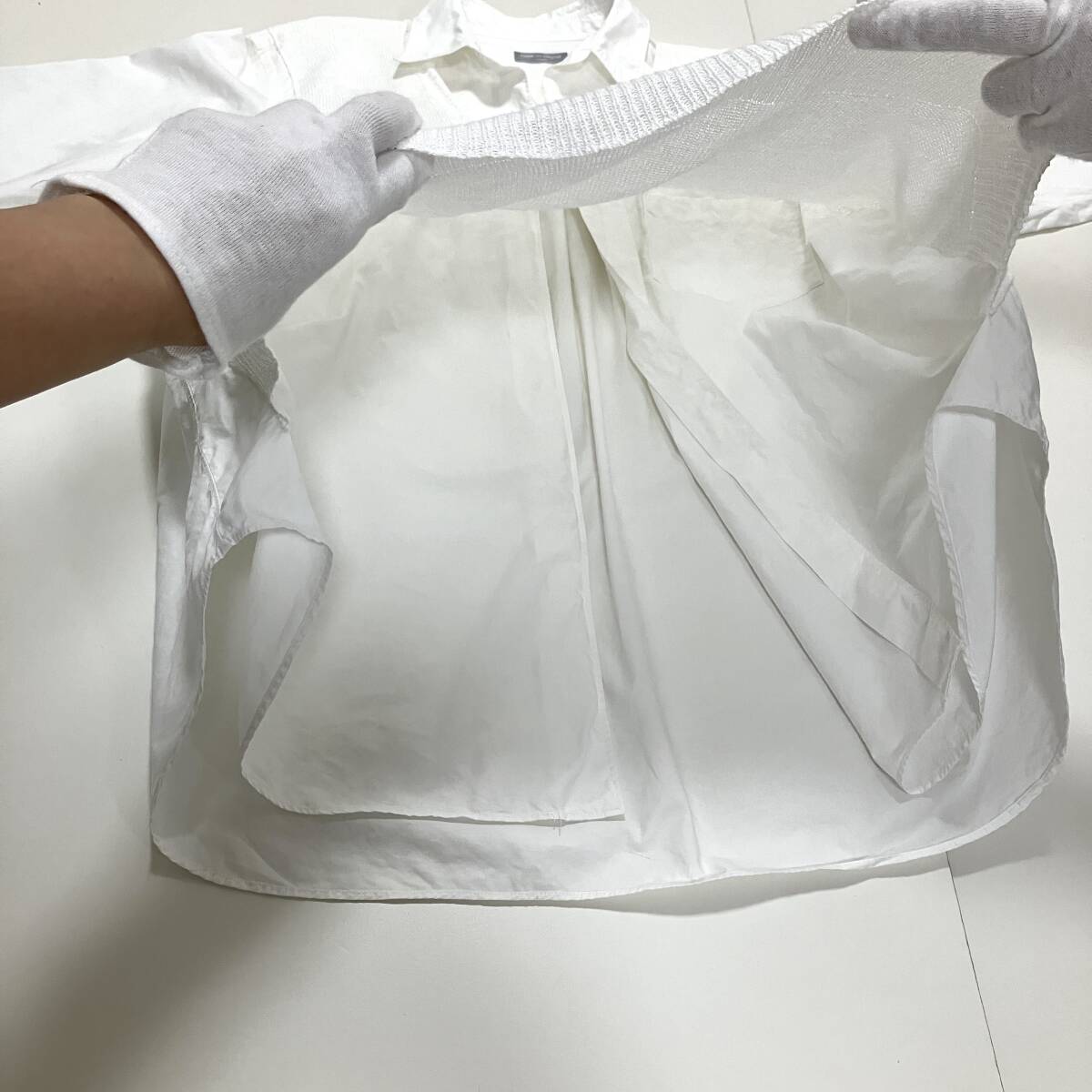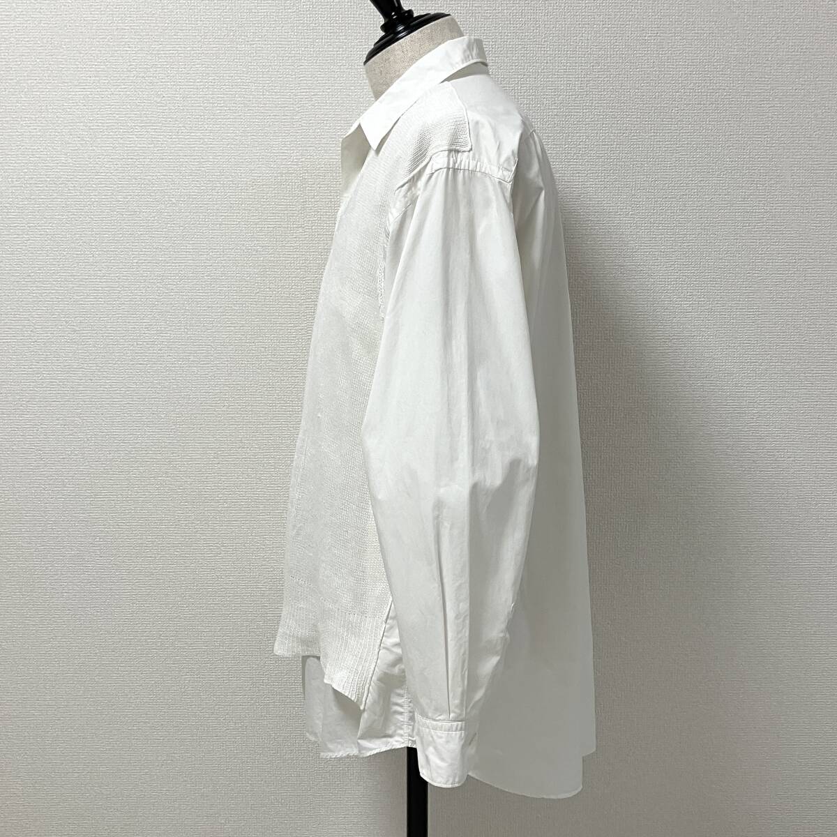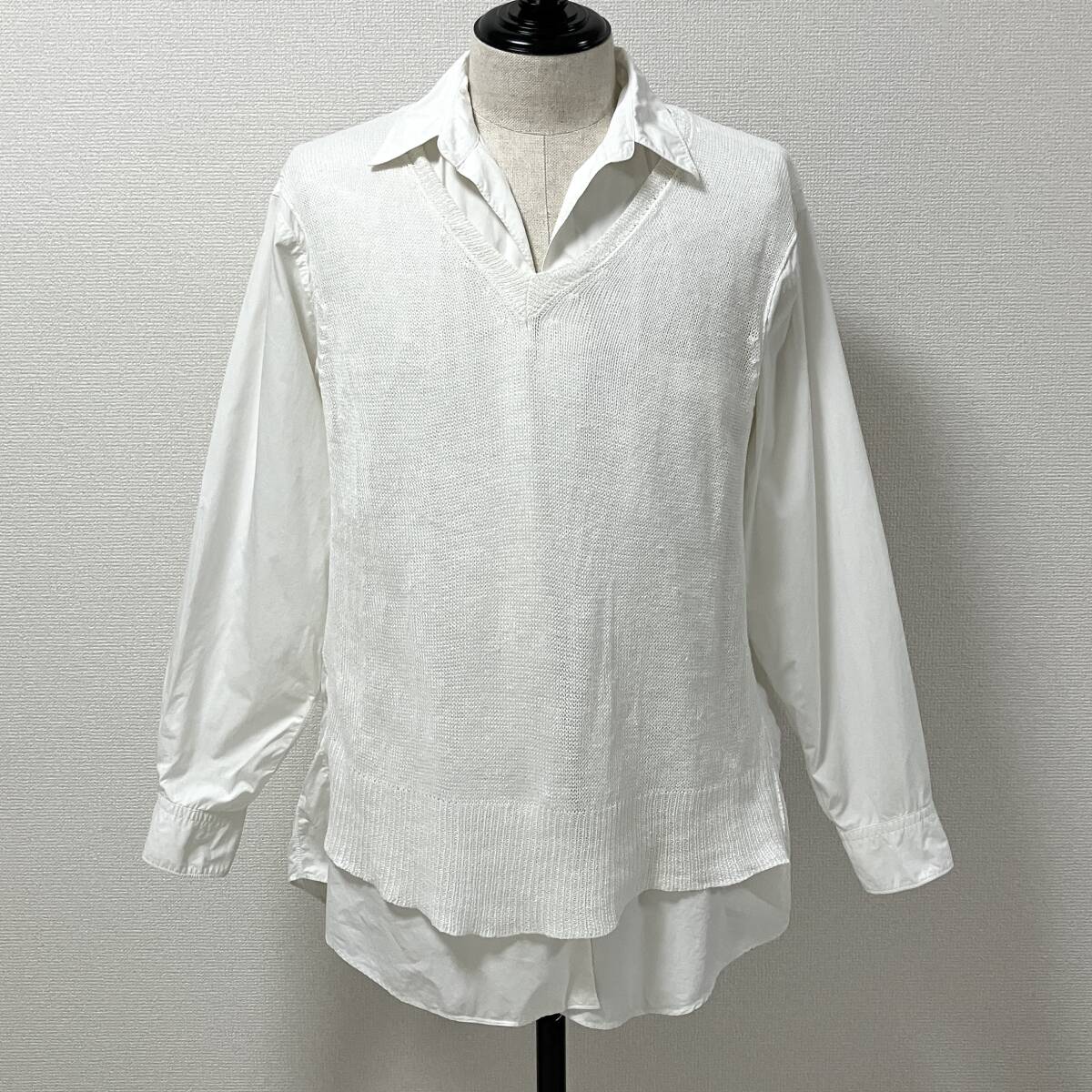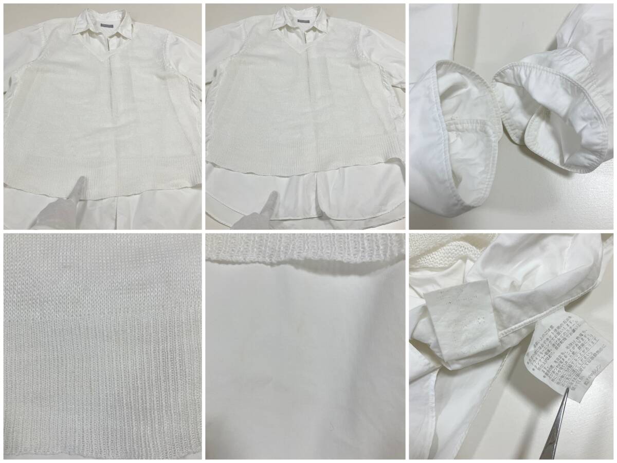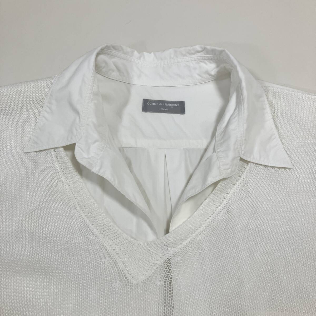 AD1997 田中オム COMME des GARCONS HOMME ニット ドッキング ボタンレス 長袖 シャツ ホワイト