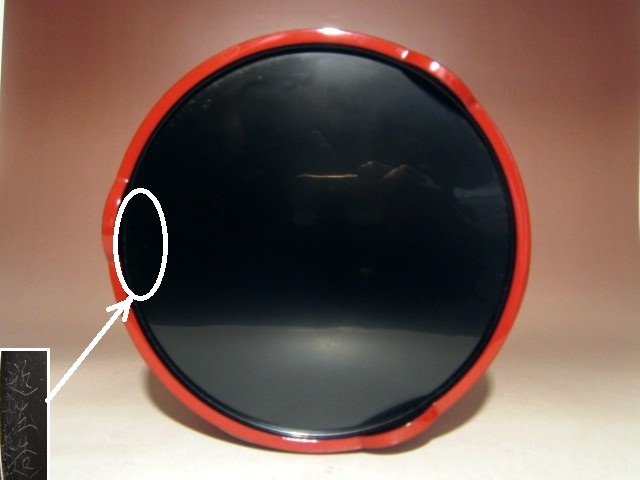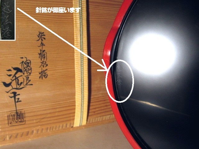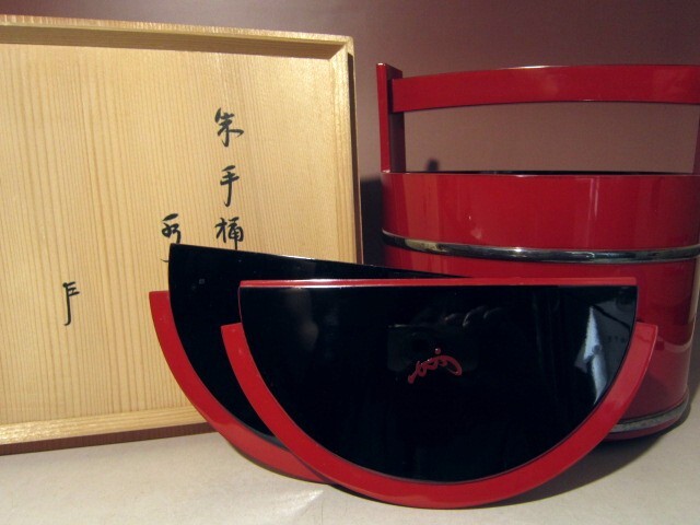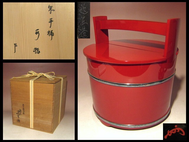 塗師 川端近左 朱手桶水指★表千家十三代即中斎割花押★a588