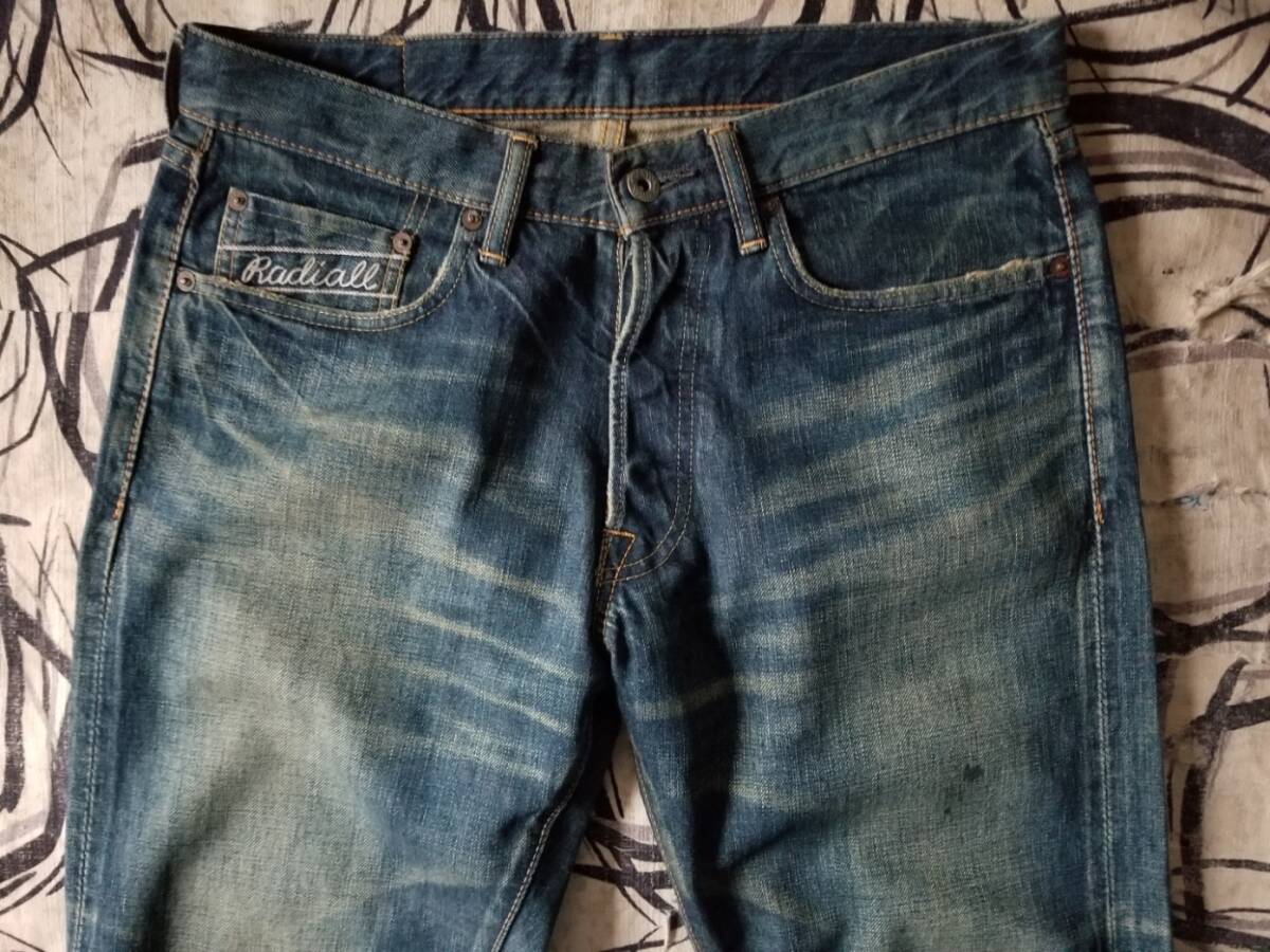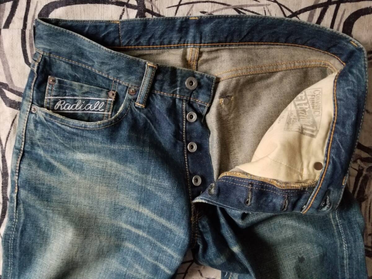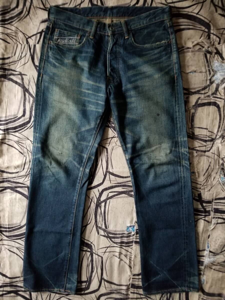 EL RADIALL ラディアル 雰囲気 髭 ハチの巣 革パッチ 赤耳 ビンテージ セルビッジ デニム パンツ レア 濃紺 インディゴ ジーンズ W30 501XX