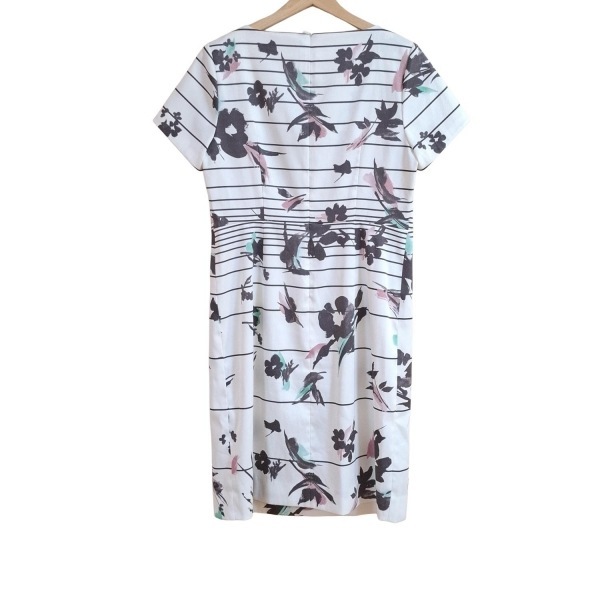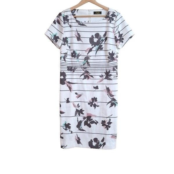 レリアン Leilian サイズ13 L - 白×ダークブラウン×マルチ レディース クルーネック/半袖/ロング/花柄/ストライプ ワンピース