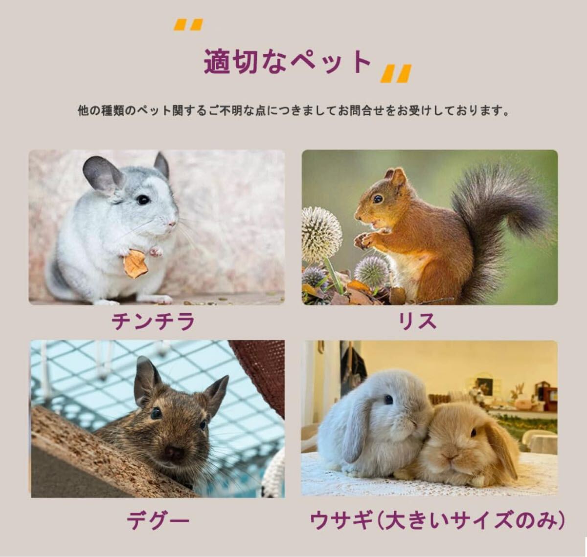 【様々なペットに適す】チンチラに限らず、リス、ウサギなどの齧歯類のペットにも使用できます。