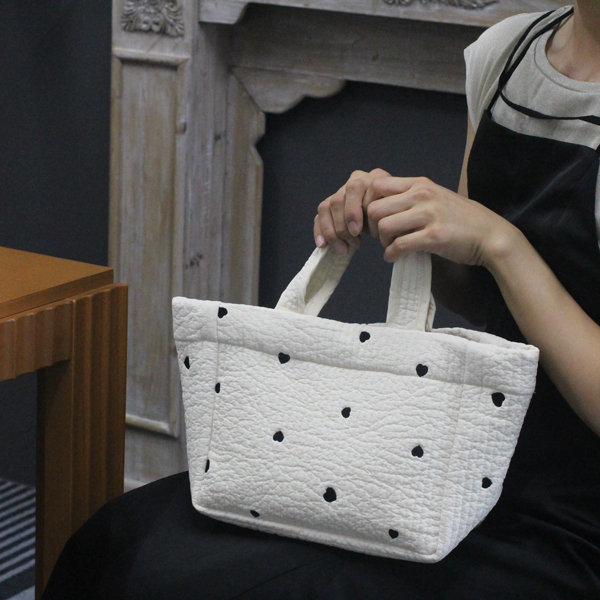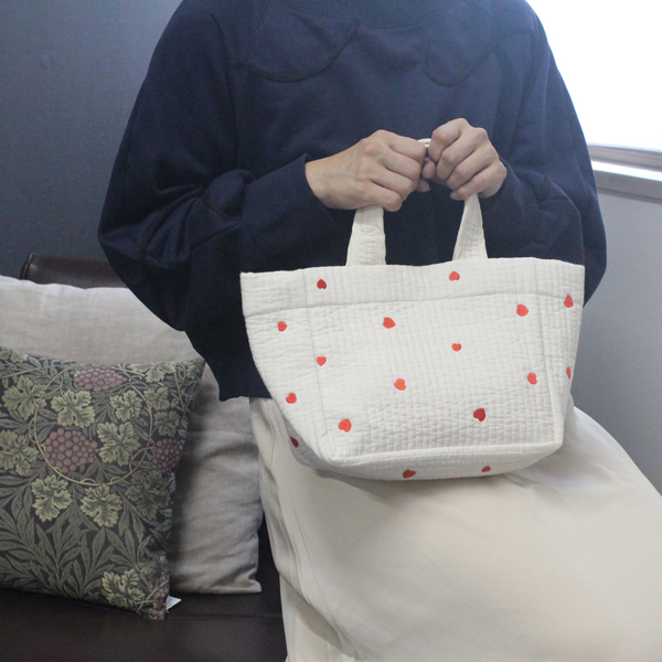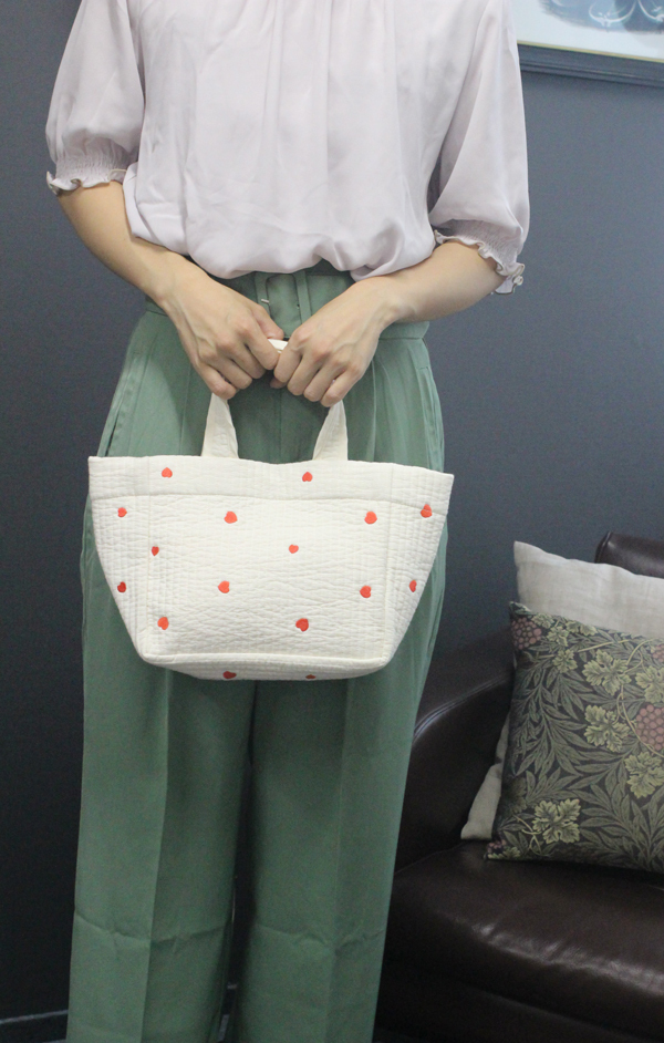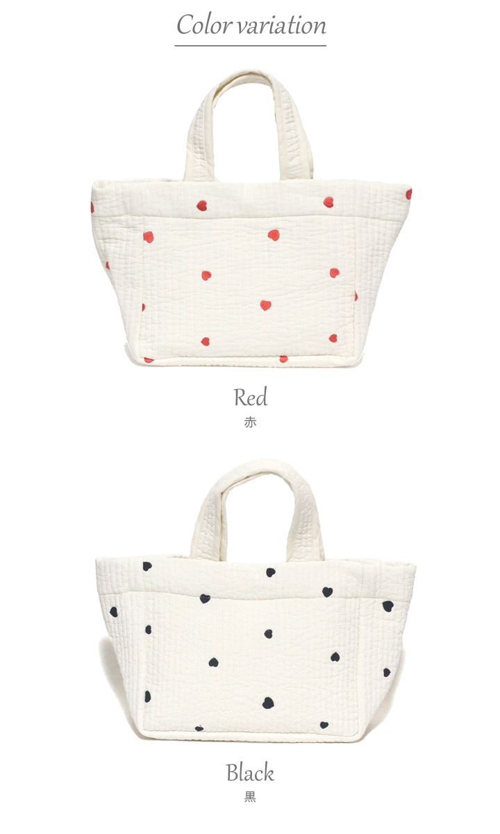 商品説明 | 『ヌビバッグ』とは?! ヌビとは韓国語でキルティングしたものを意味します。 そのキルティングの生地で韓国の布団であるイブルを作ることからイブルバッグとも言います。 ◆特徴◆ やわらかく肌触りが抜群! 軽くて肩コリ知らず! 洗える生地なので清潔! イブルのナチュラルの風合いがシンプルなので、 カジュアルファッションからキレイめファッションまでマッチします!! みんな大好きなハート刺繍♪可愛らしいミニトートバッグです。 コンビニへお買い物♪公園へお散歩♪ちょこっとお出かけにぴったりです。 Sサイズは、500mlペットボトルは寝かせればすっぽり入りますし、立ててもちょっと顔が出る程度です。 マチ広めの舟形なので驚きの収納力です!! *柄の出方は掲載画像と相違がございますので予めご承知おきくださいませ。 |