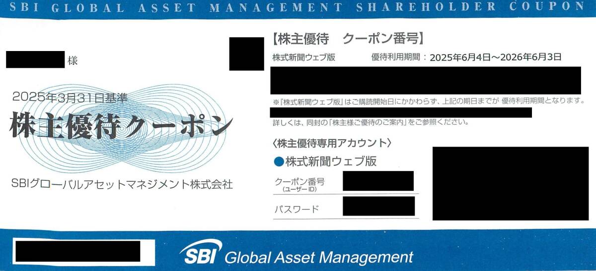 SBIグローバルアセットマネジメント(旧モーニングスター)の株主優待です。