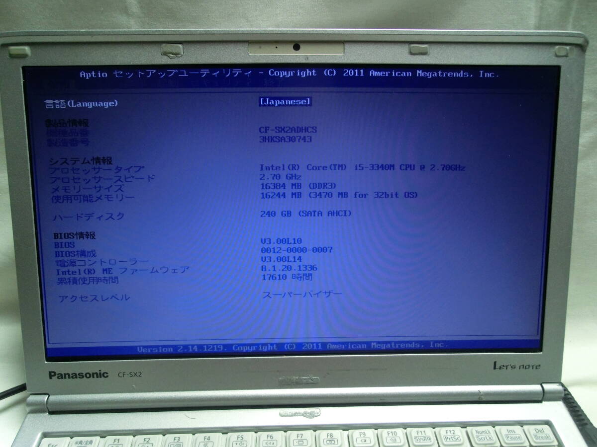 【中古】液晶不調 Panasonic Let's note CF-SX2/Intel Core i5-3340M/メモリ16GB/12.1型 1600×900/管理番号:NPC2506-677