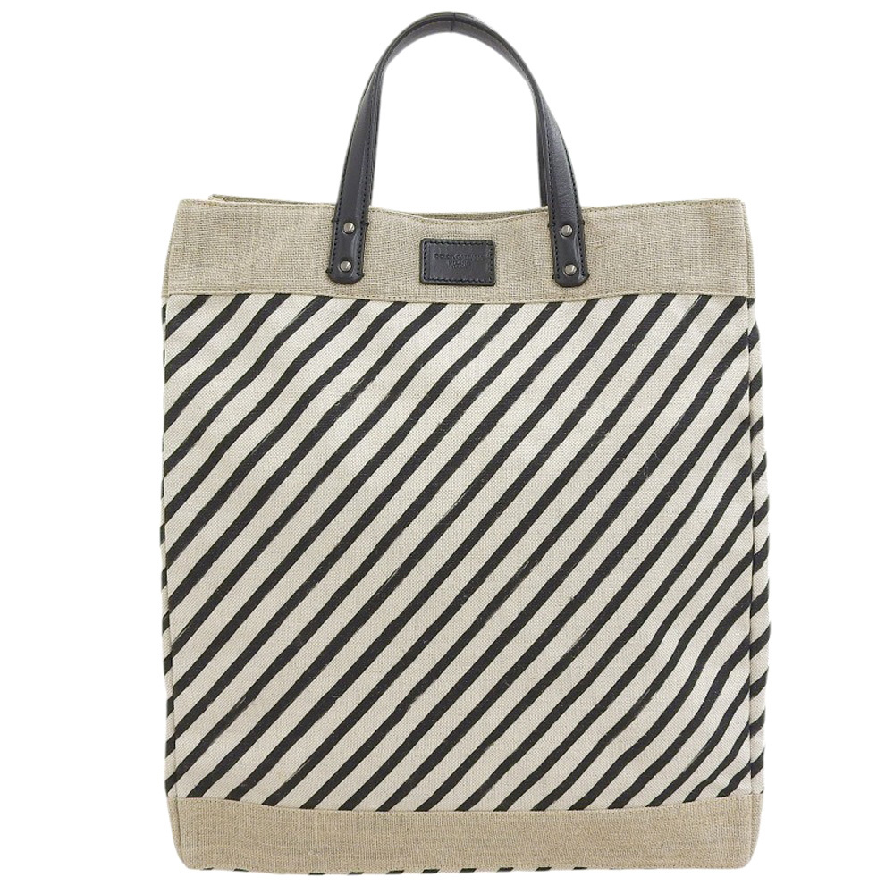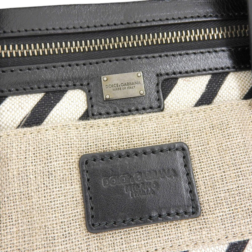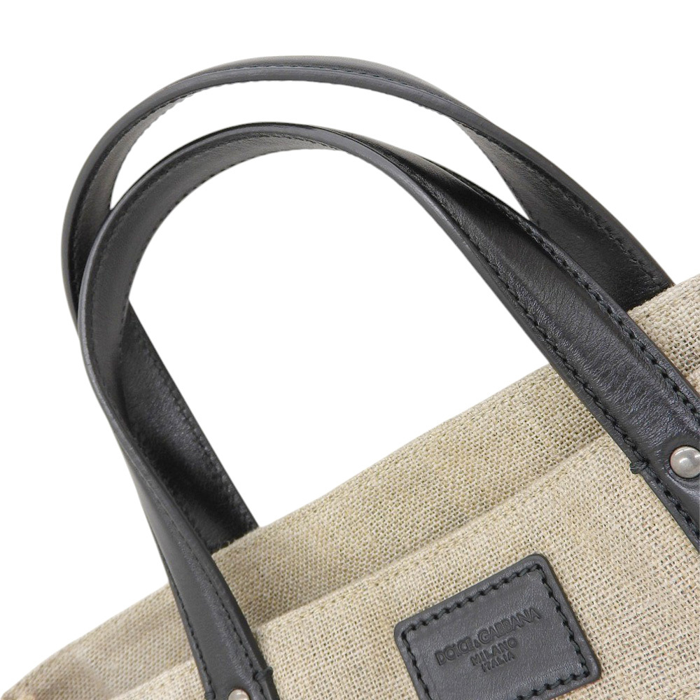 | 超美品 ドルチェ&ガッバーナ 現行メタルタグ レザー リネン コットン キャンバス トート ハンドバッグ レディース メンズ 旅 ほぼ未使用 |
