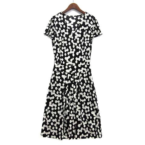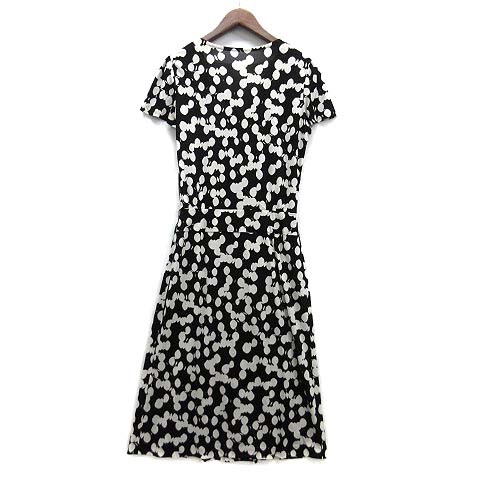 アクアスキュータム AQUASCUTUM 総柄 Vネック ロング ワンピース 半袖 ジャージー ブラック 黒 8 レディース