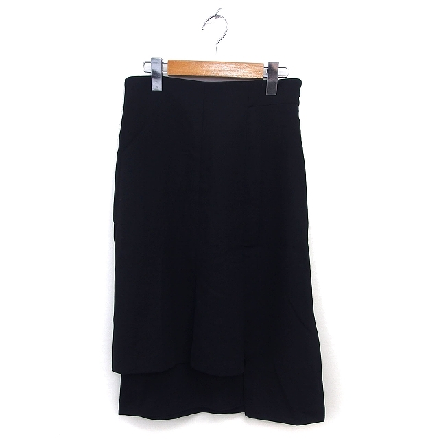 アクリス AKRIS ウール タイト スカート ロング スリット バックロング 無地 6 黒 ブラック /NT12 レディース