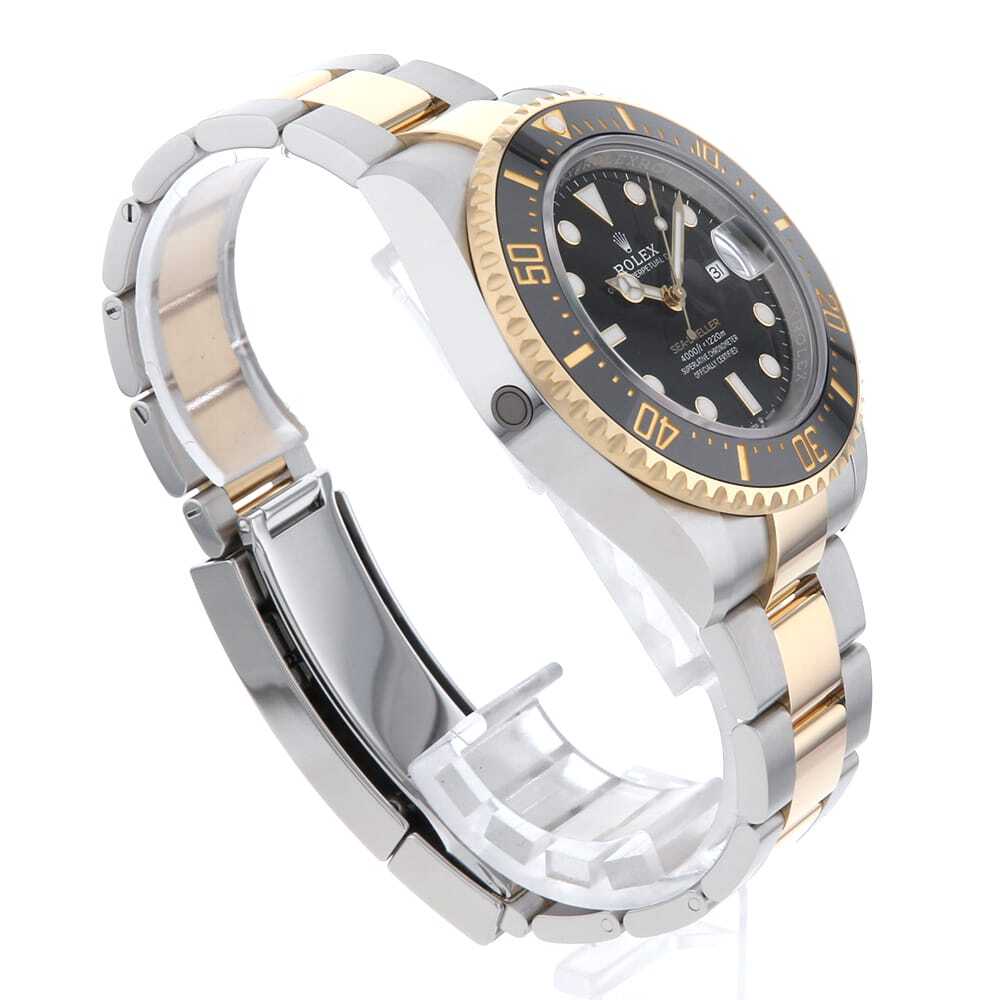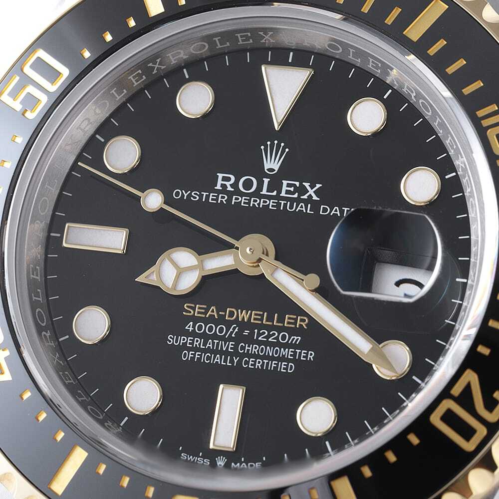 モデル情報 | 2019年のバーゼルワールドで発表された"シードゥエラー"です。基本的なスペックは2017年に発表されたRef.126600と同じですが、シードゥエラーシリーズでは初めてとなるロレゾールが用いられたコンビモデルとなります。文字盤6時位置の「SEA-DWELLER」の文字も金色で表記されており統一感のあるデザインに仕上がっています。パワーリザーブは約70時間。1220m防水。 |