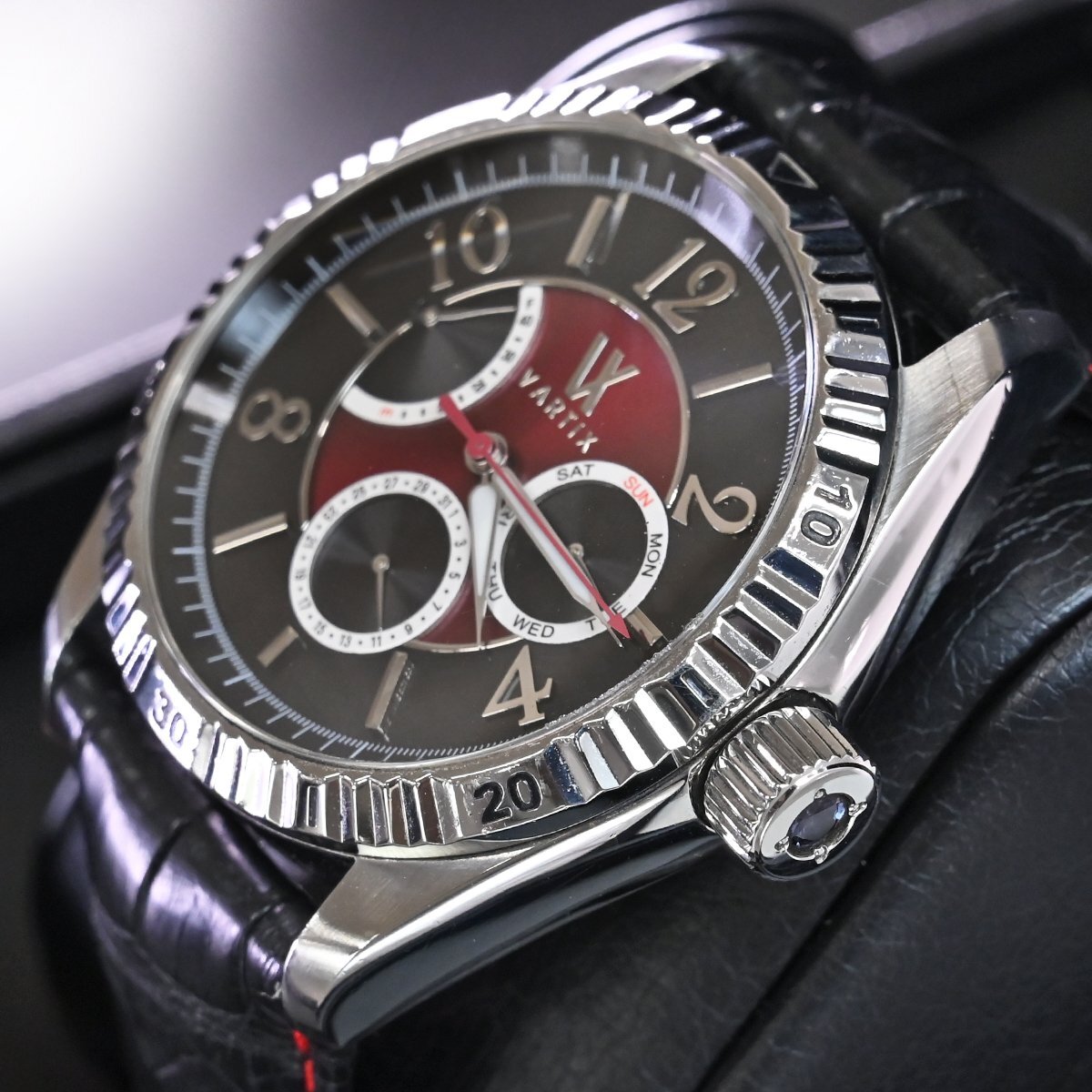 ヴァティックスの0.212ct ジェムセット 銀無垢尾錠 ALIVE アライブです。 ロックアーティスト、GACKTさんがデザイン監修するブランド「VARTIX ヴァティックス」 MADE IN KYOTOを元に伝統×革新を目指した「現代風ヴィンテージ」として手元を飾る。 国内宝飾最高のクラフト技術を持つブランドとの共同開発による「匠」が息づく一本です。 リューズには0.212ctのジェムストーンが純正セッティングされており、銀無垢尾錠仕様。 一点ものとなりますのでお早めにご検討下さいませ。 ※基本動作確認済。 |