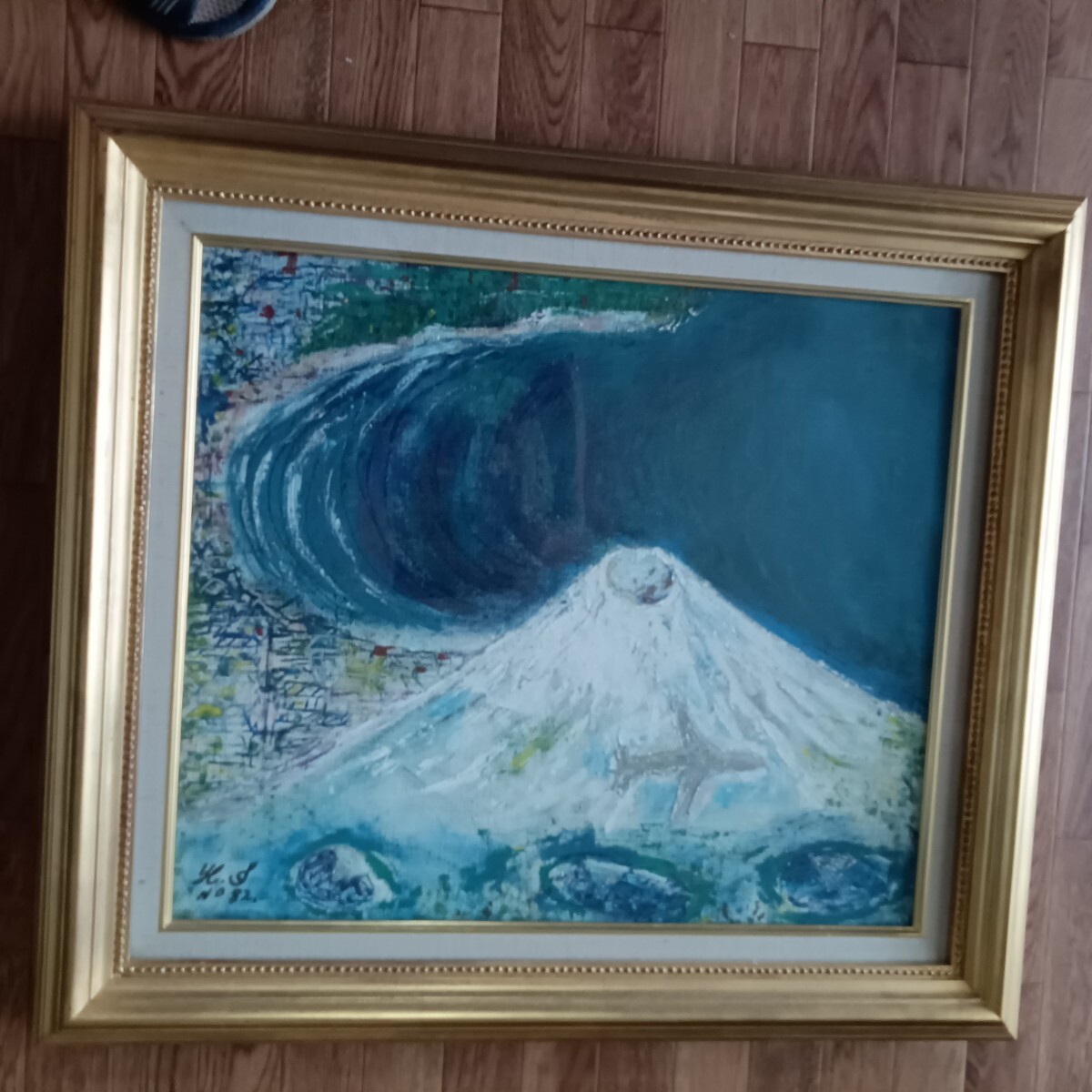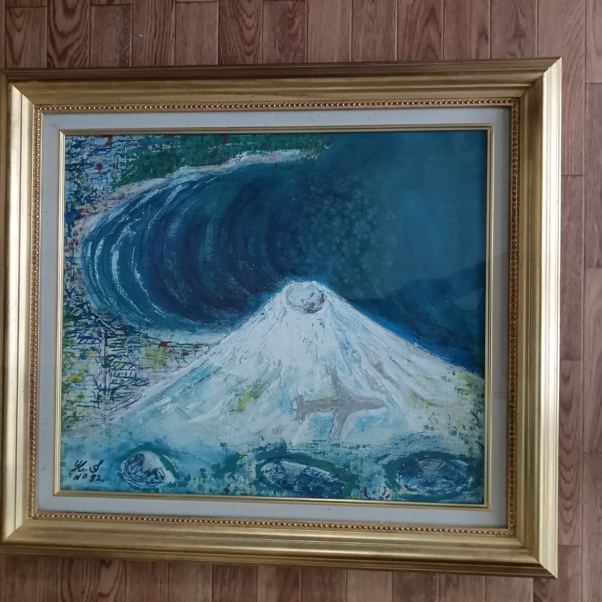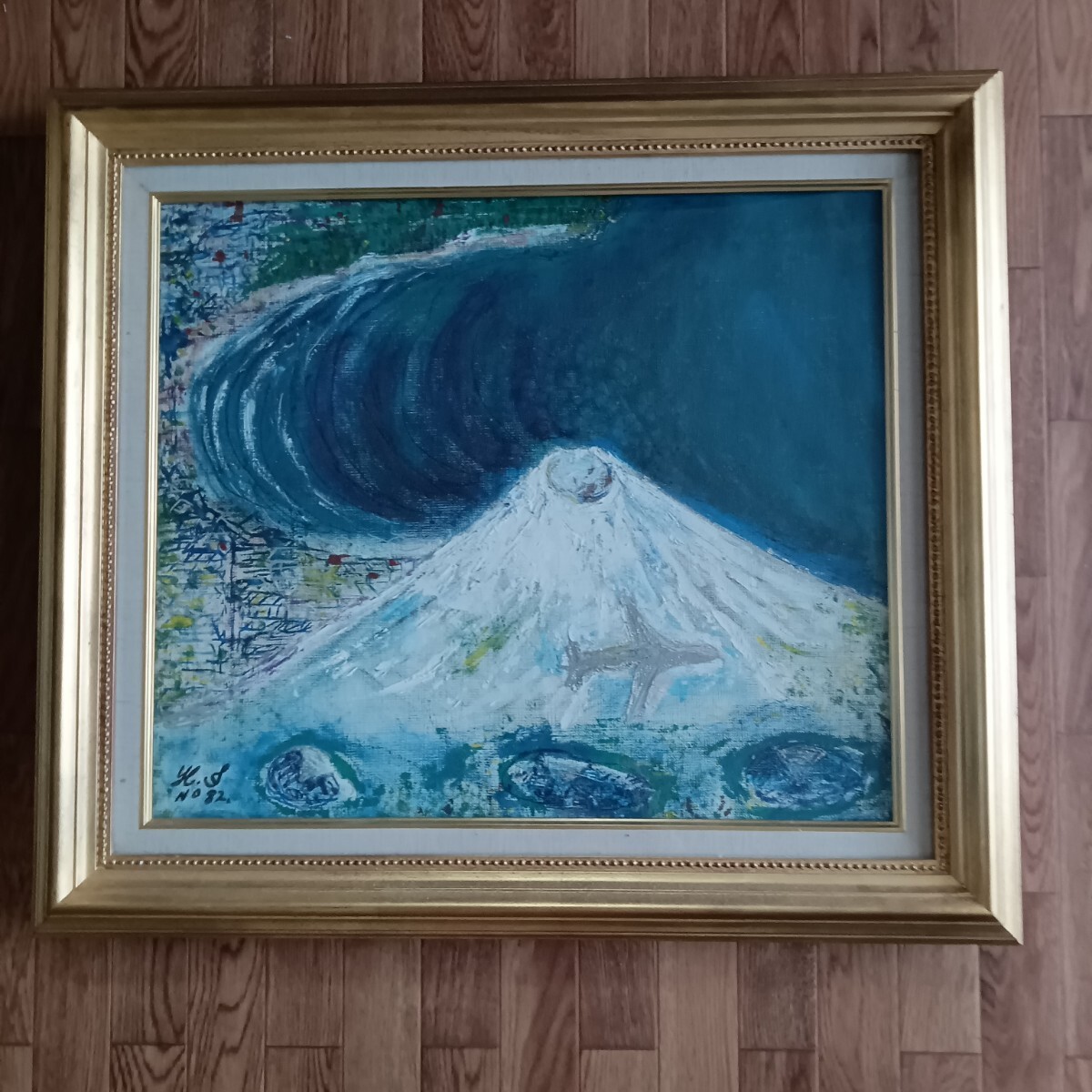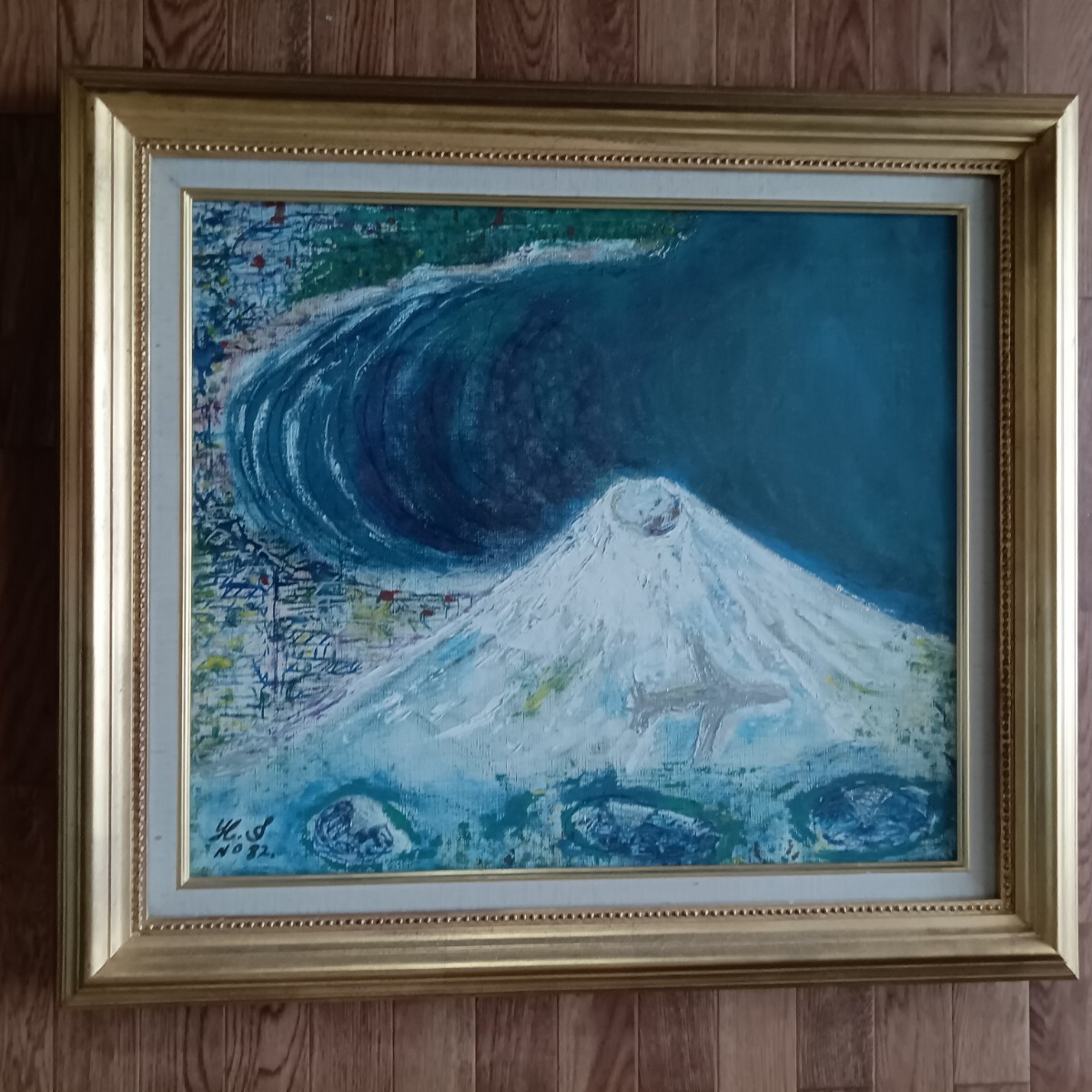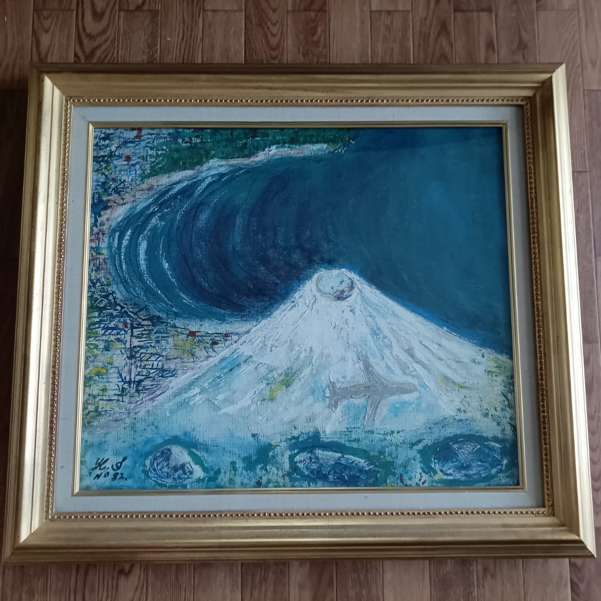 ポップアートの富士山曼荼羅図、俯瞰で見る富士山、真作、油絵、F10号、額入り、
