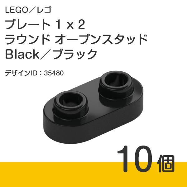 LEGO レゴ 正規品 プレート 1 x 2 ラウンド オープンスタッド /Black/ブラック/黒 10個【新品】No.35480