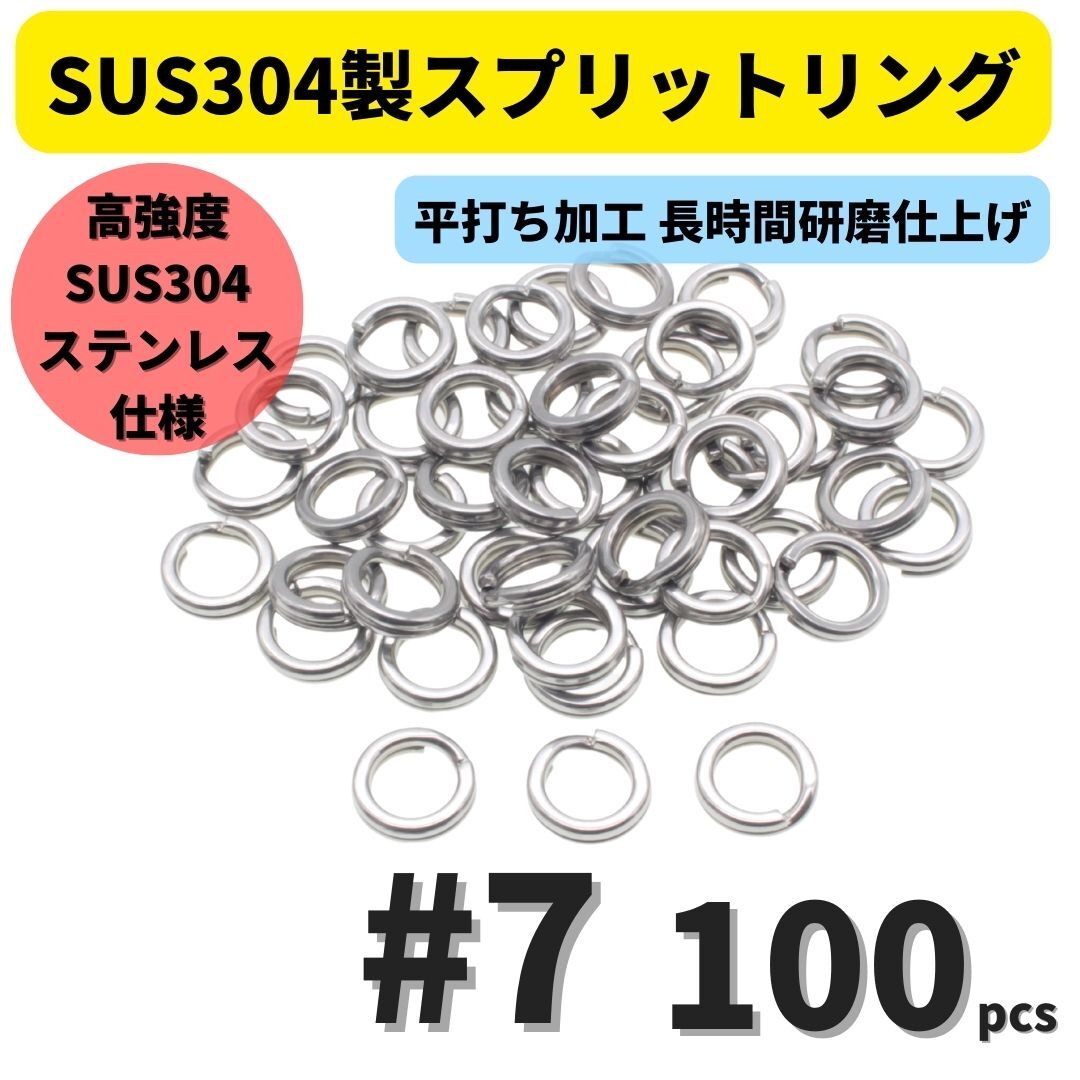 【送料無料】最強素材! SUS304 ステンレス製 強力 平打ち スプリットリング #7 100個セット ソルト対応品 長時間研磨