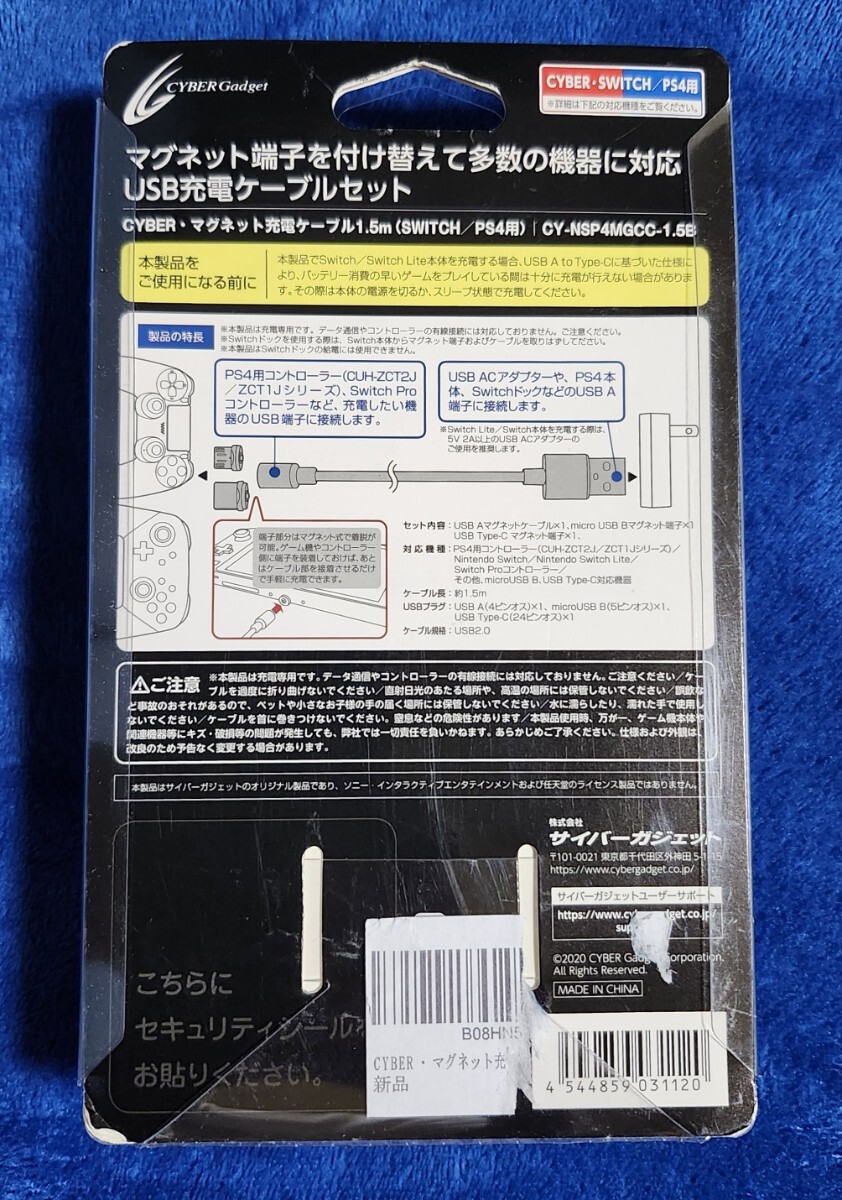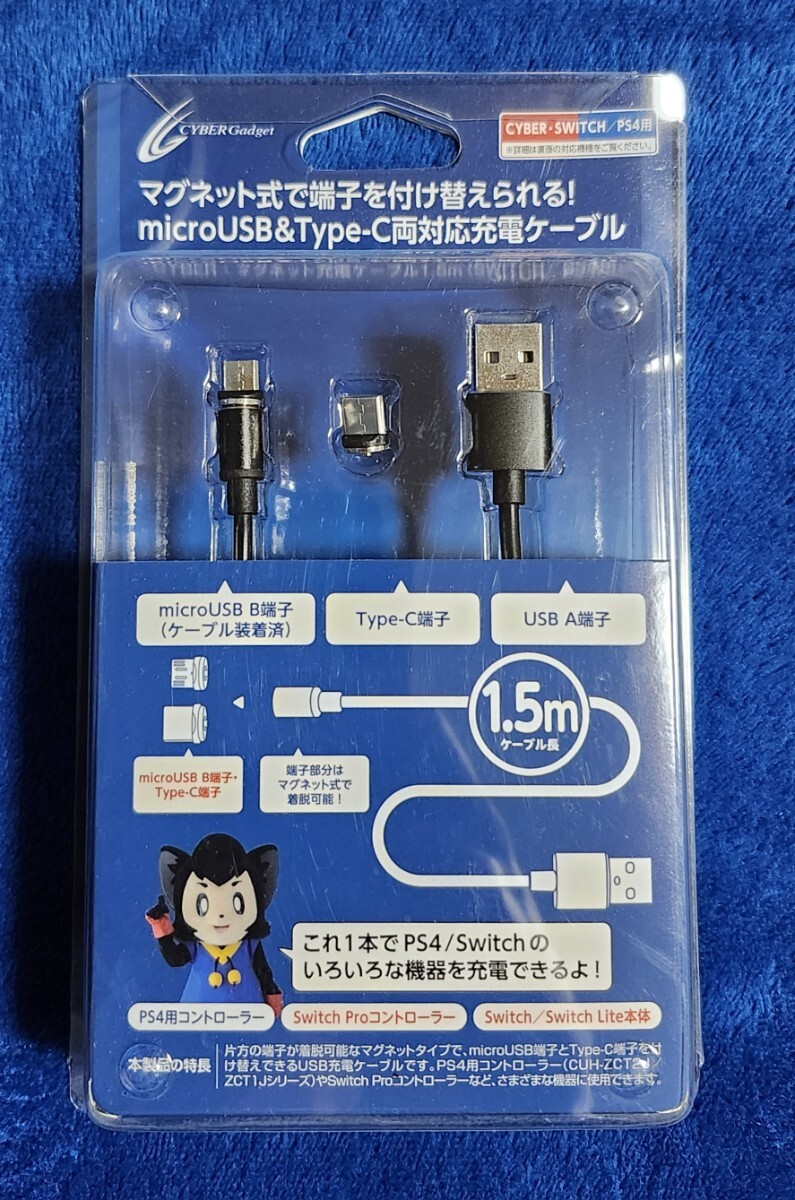 CYBER ・ マグネット充電ケーブル ( SWITCH / PS4 用) ブラック 1.5m - Switch PS4