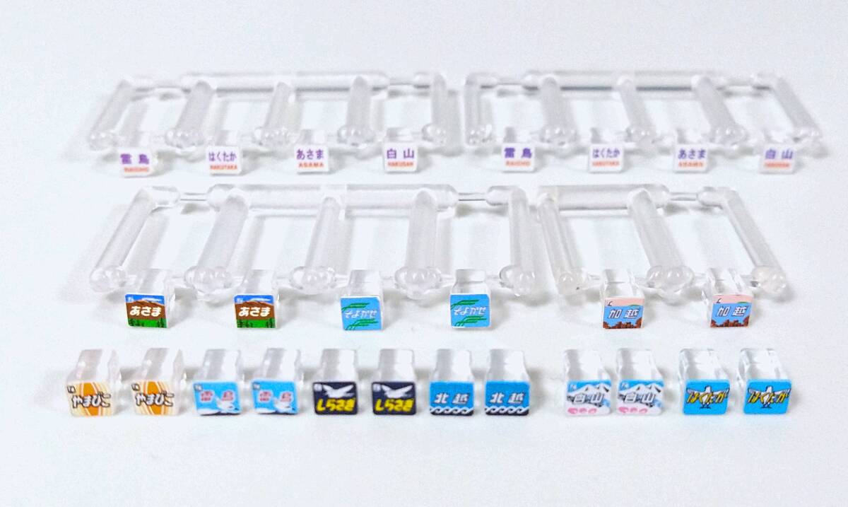 「やまびこ(イラスト)」は、489系には関係ありませんが、もともとクハ481 200番代に装着されていたものなので、そのまま付属させます。同様に、写真は無いものの「白鳥(文字)」の交換用ヘッドマークも付属します。