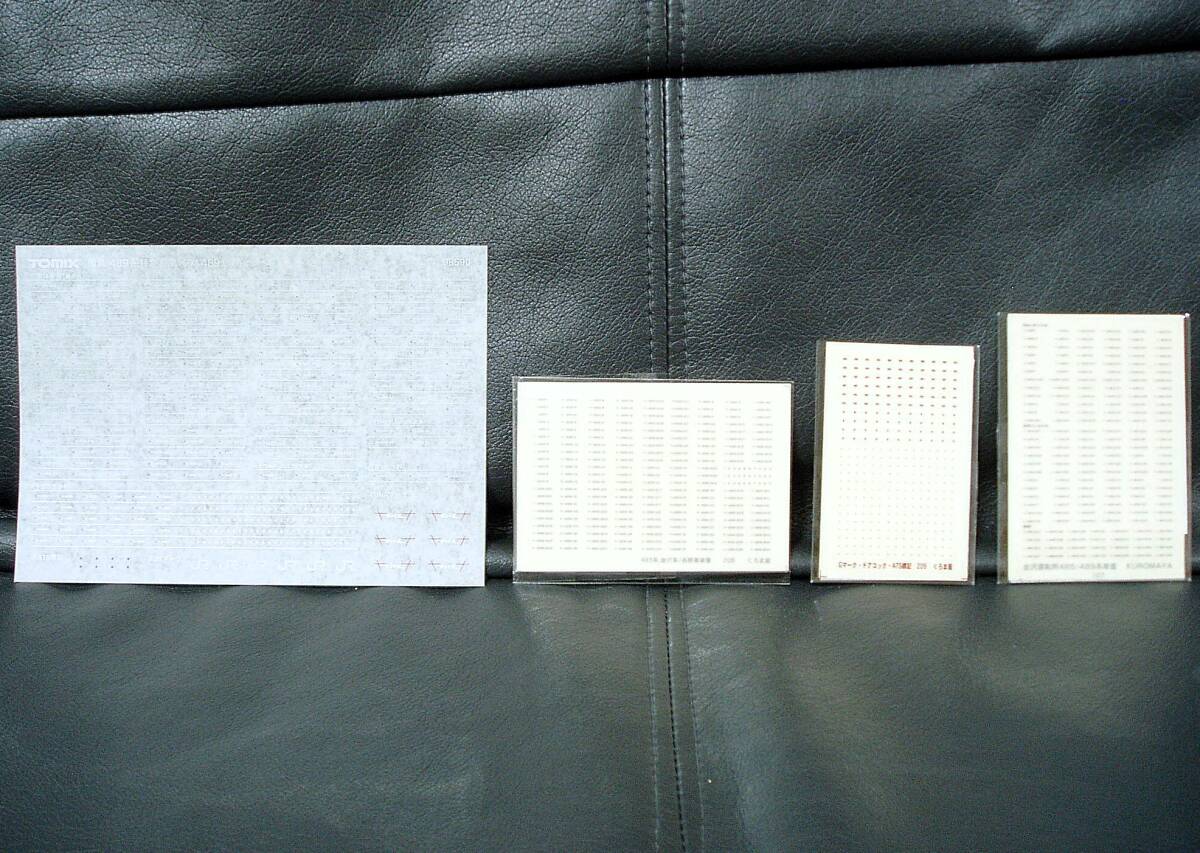 転写シート(車番インレタ)は、92425セットのものが1枚付属しますが、489系用の車番が無く無意味なので、(1)「TOMIX 98590 国鉄489系特急電車(クハ489-200・600)基本セット」の転写シート(車番インレタ) (2)くろま屋のインレタ3種(107 金沢運転所 485/489系 車番、208 489系 金沢車/長野車車番、209 Gマーク・ドアコック・ATS表記 赤2号) を各1つずつお付けします。(写真2枚目、9枚目参照)