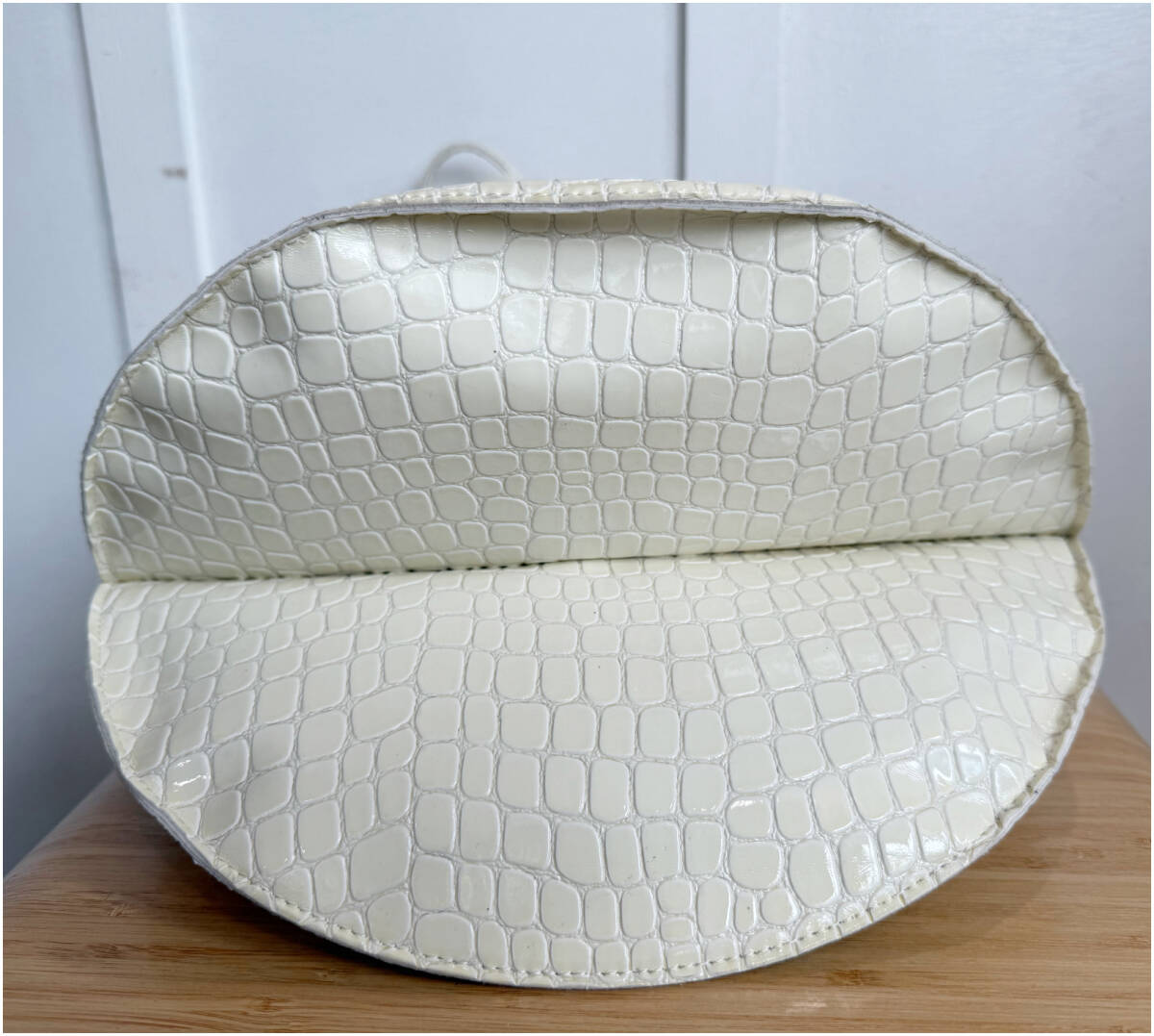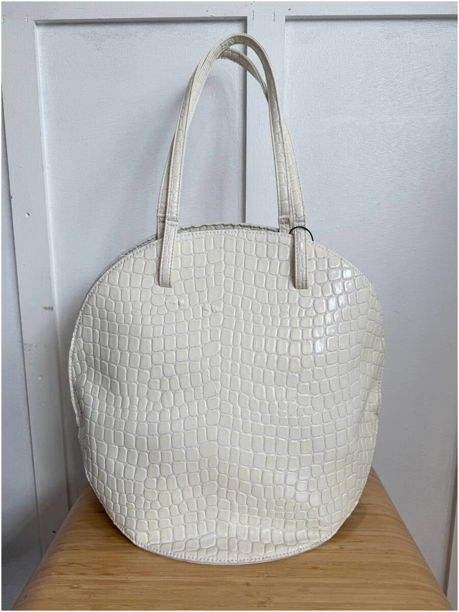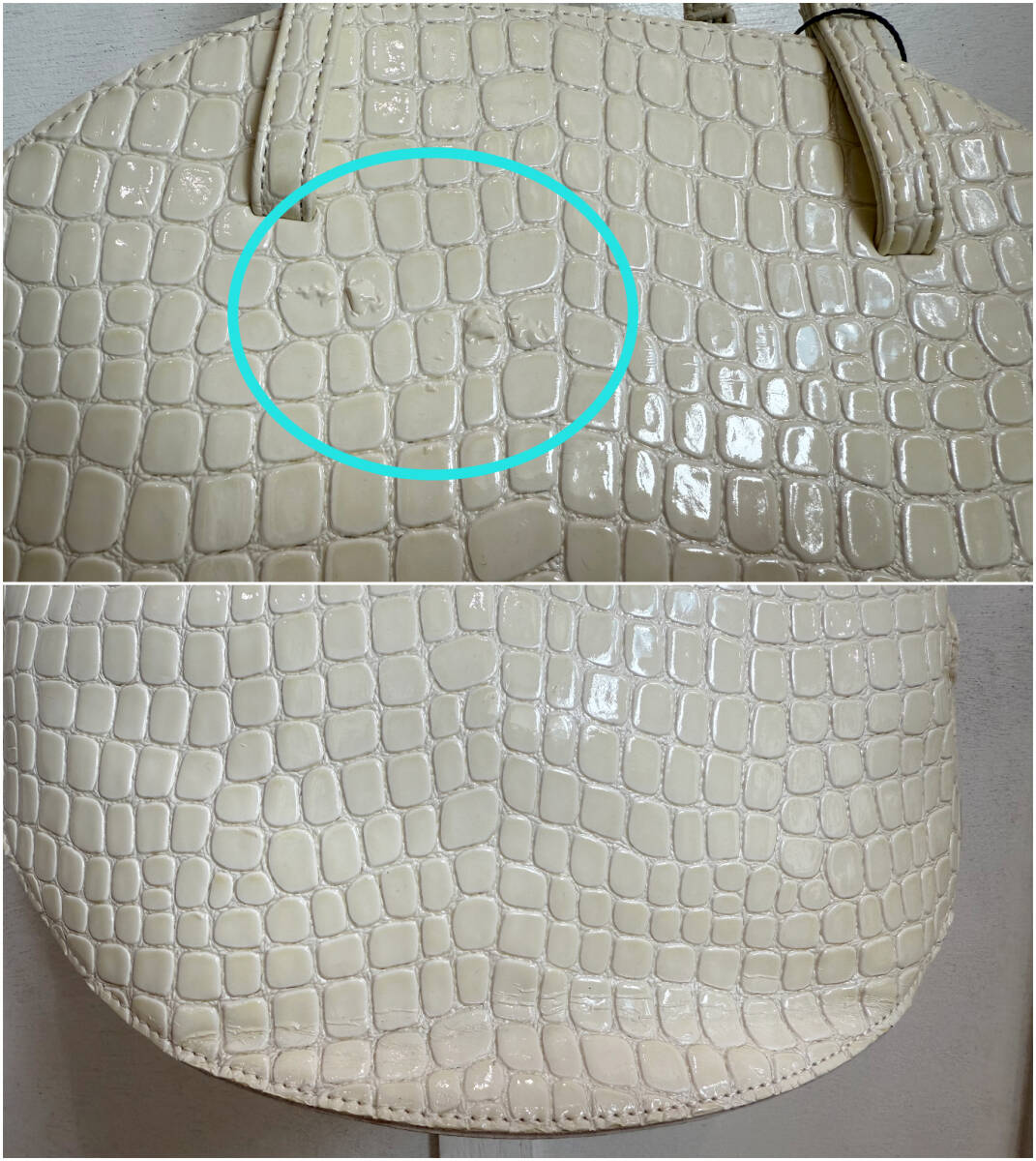 商品説明 | サークル型の型押しバッグ 合皮のエナメル 内側に2箇所ポケット付き 使用回数は少ないのですが 長年使用せずに保管していたため 表面所々とハンドルに経年劣化によるダメージ (空気が入りシワがよってます) 素材 ポリウレタン樹脂 サイズ 縦 32cm 横 35cm マチ 10cmが2箇所 ハンドル 48cm *あくまでも中古品ですのでコンディションが良い物でも 新品の状態とは異なります。 洗濯洗剤や香水の匂いが残っている事もございます。 中古品とご理解頂いた上でのご入札をお願い致します。 |