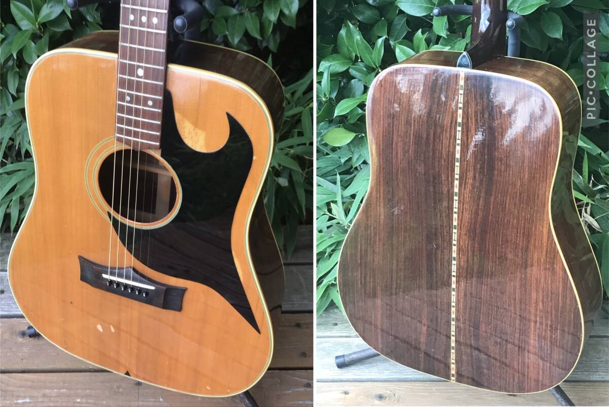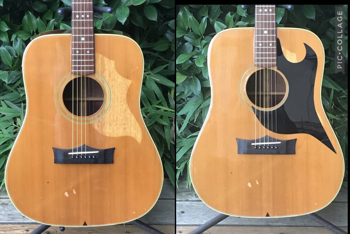 ☆…画像 2枚目左 入手時 ピックガードがハミングバードtypeが貼られいました ボディ ヤケは有りましたが 以前型どりして オーダーしていたGシリーズのピックガードを装着 … サマに成りマシタ