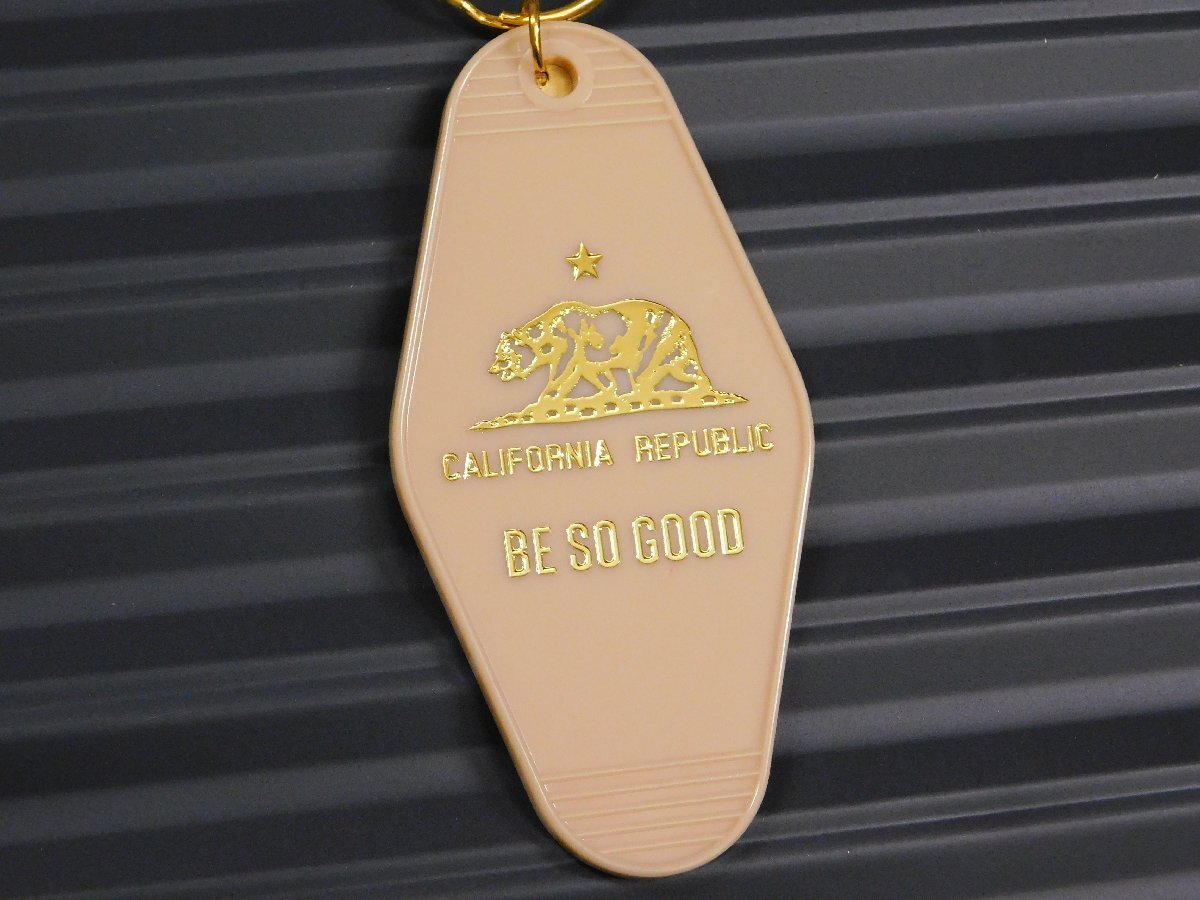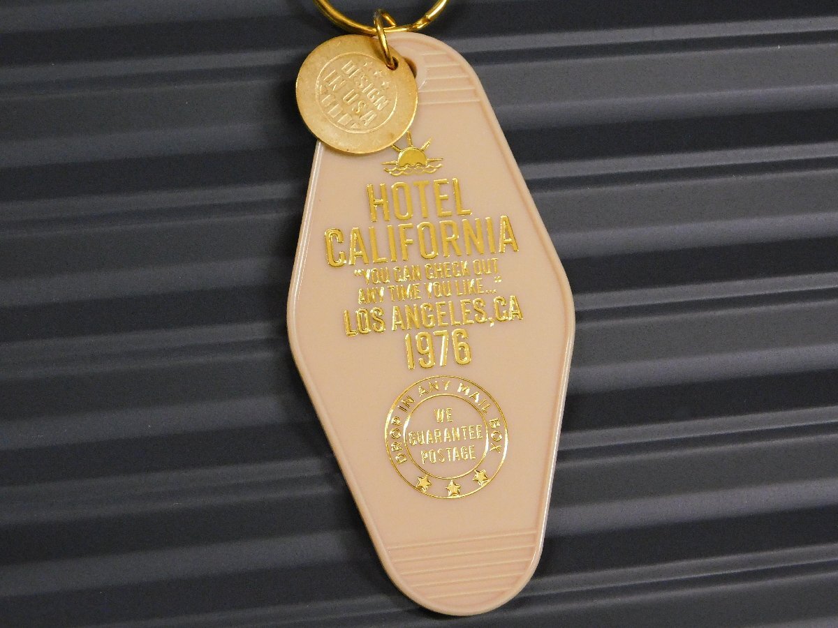 ◆送料\140◆【モーテルキーホルダー】※《HOTEL CALIFORNIA / クリーム×ゴールド》 カリフォルニア ホテル キータグ キーホルダー