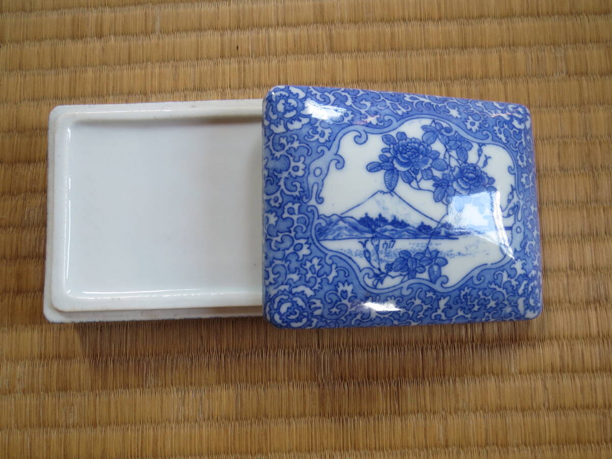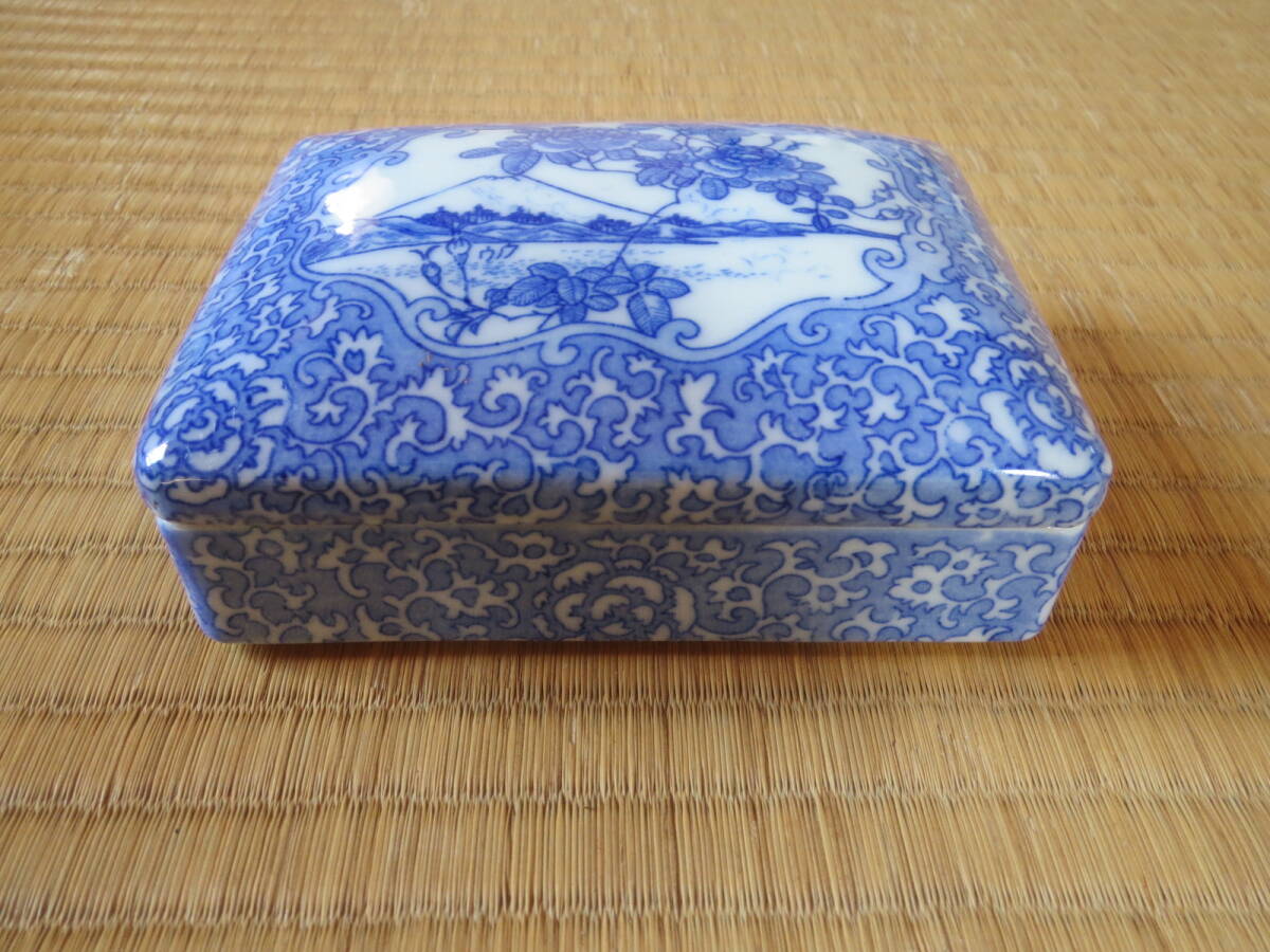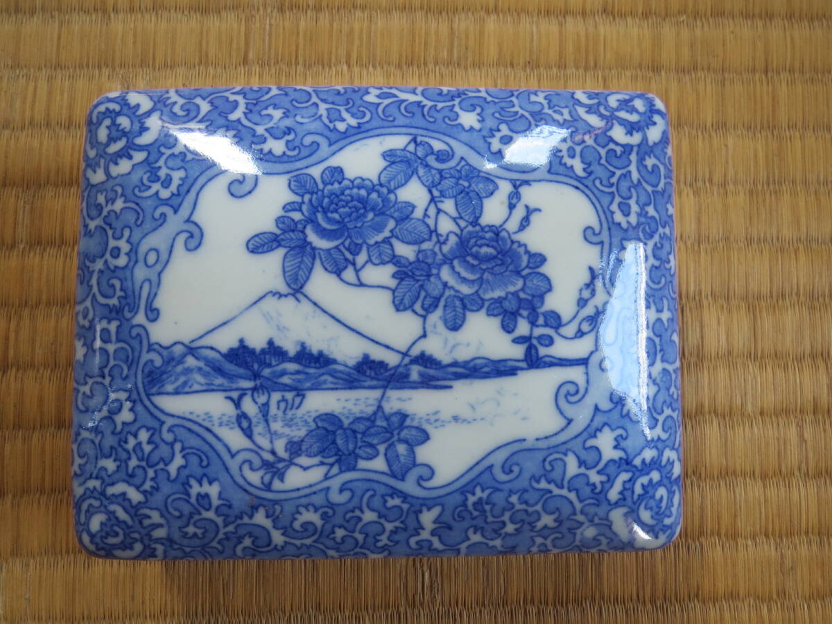 印版 蓋物 小物入れ 枠絵 富士 花唐草囲み
