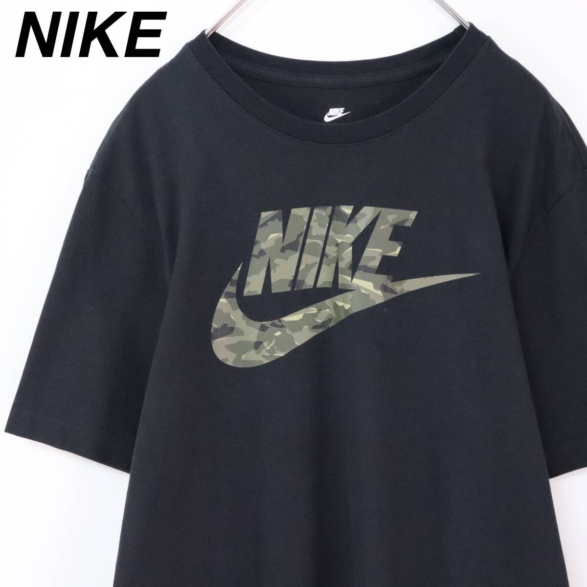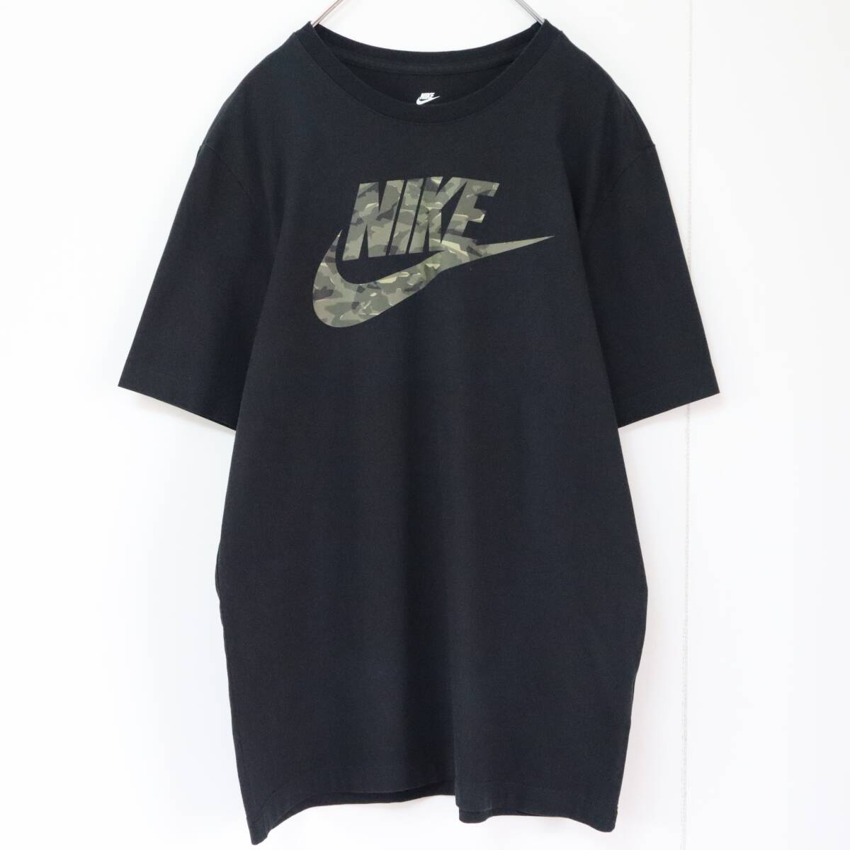 【迷彩柄ロゴ】ナイキ Tシャツ デカロゴ ビッグスウォッシュ Lサイズ ブラック