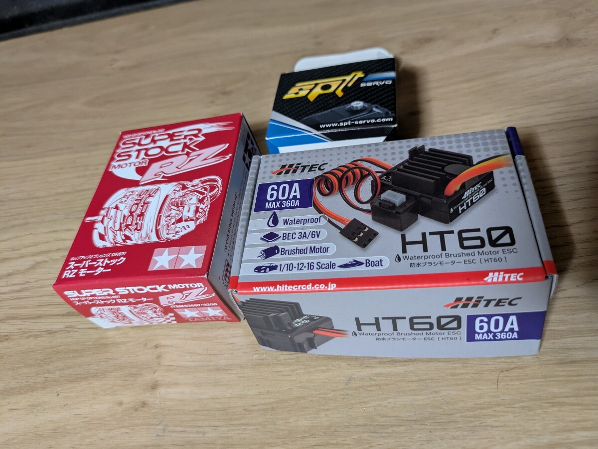 画像にあるアンプ、モーター、サーボの箱は空箱です。