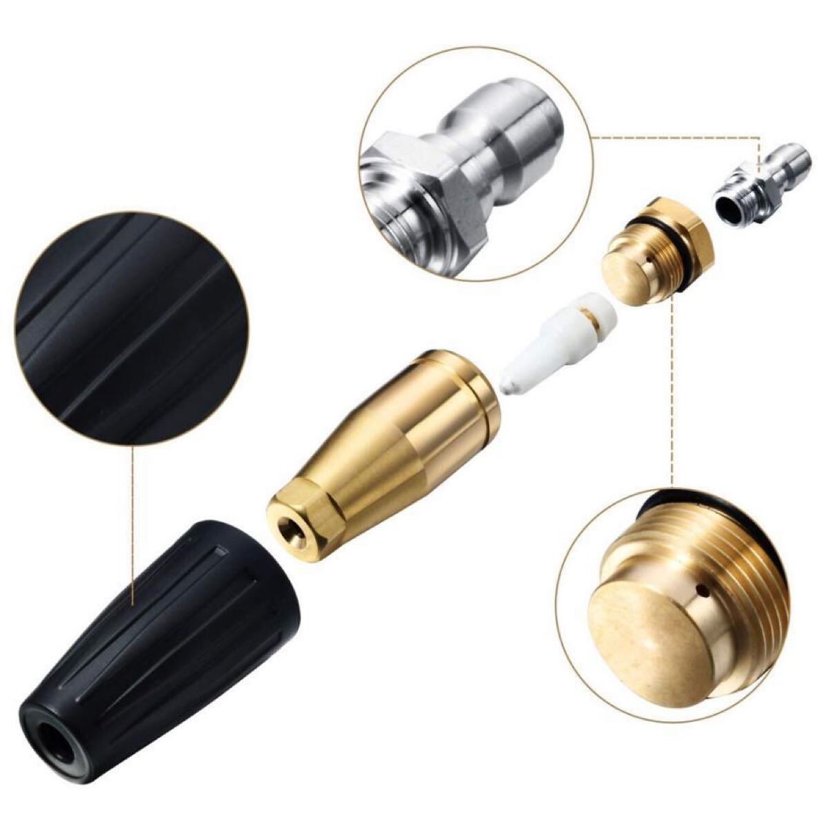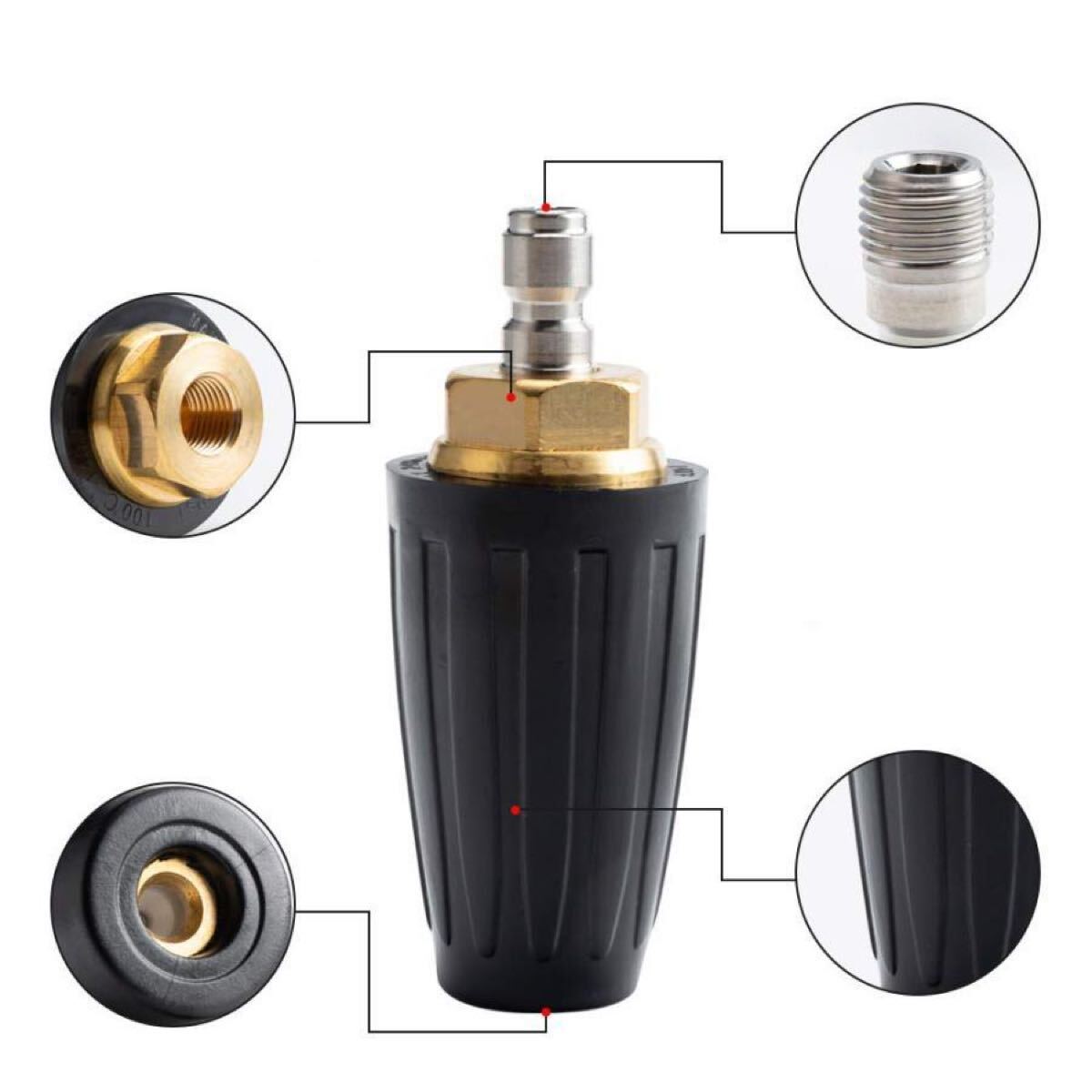 『適用範囲が広い』圧力洗浄機の回転ノズルは、回転する正確な気流を持ち、硬い表面上の頑固な汚れと汚れを除去するために使用され、汚れたレンガ、コンクリート、金属またはプラスチック缶、船の清掃、汚れた車庫の床の清掃、木製の外部からペンキをはがし、道路や建築設備上の土と粘土を除去するのに最適であります。