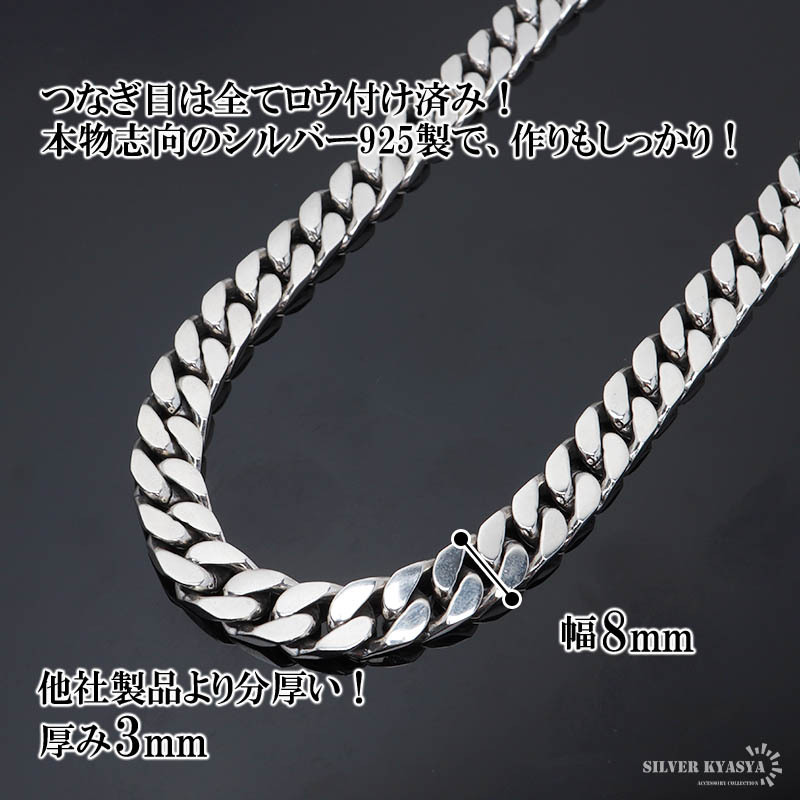 シルバー925 喜平チェーン ネックレス 幅8mm 50cm 喜平ネックレス 太め 重厚感 メンズ 男性 金属アレルギー対応