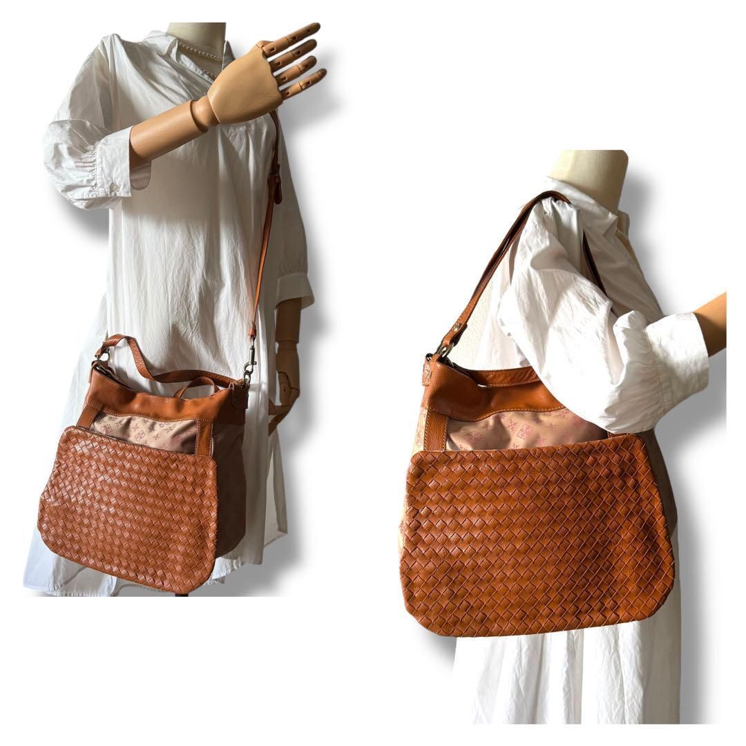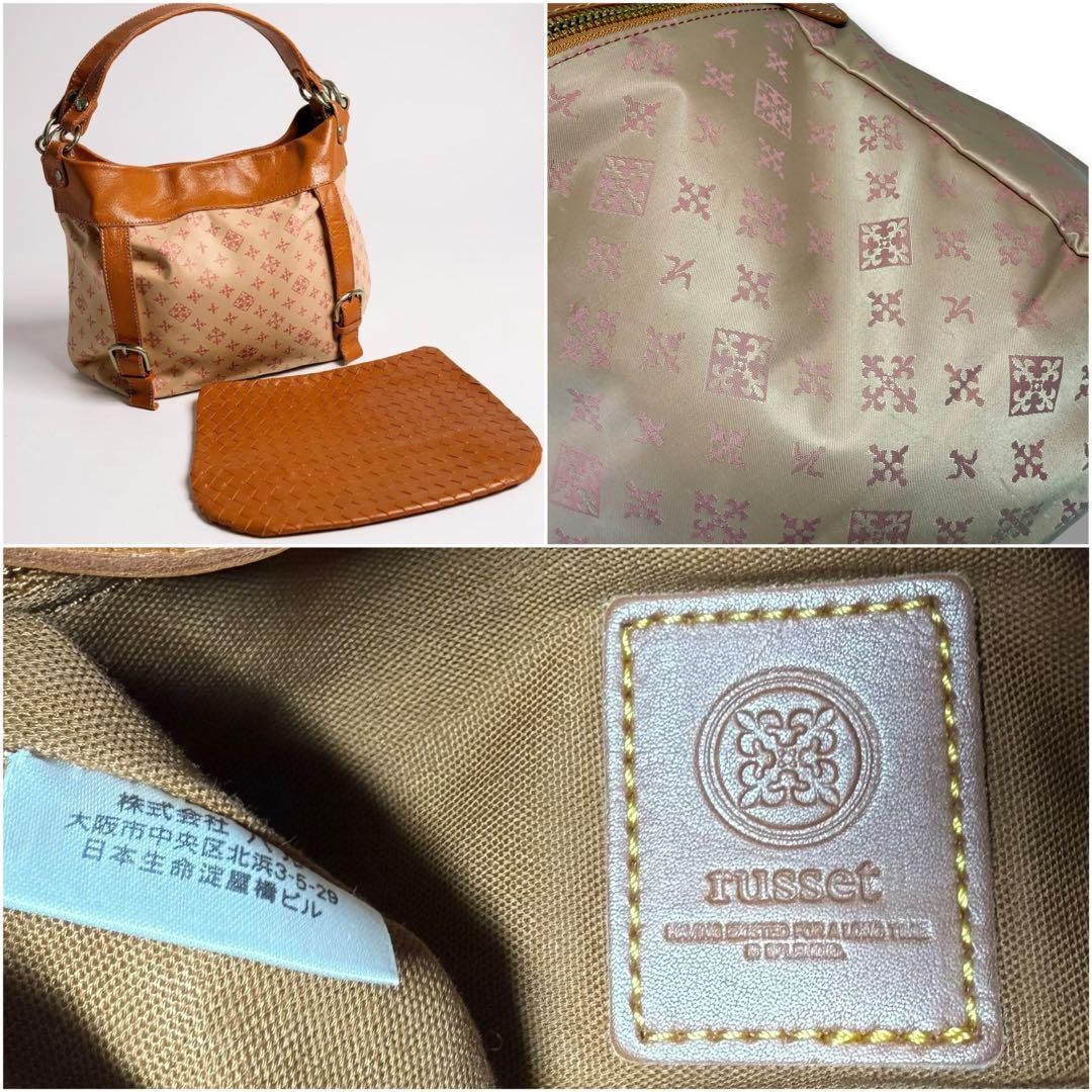 【極美品・希少】russet ラシット 3way ナイロン レザー 3way トートバッグ ショルダーバッグ クロスボディ A4 キャメル 薄ピンク S2871