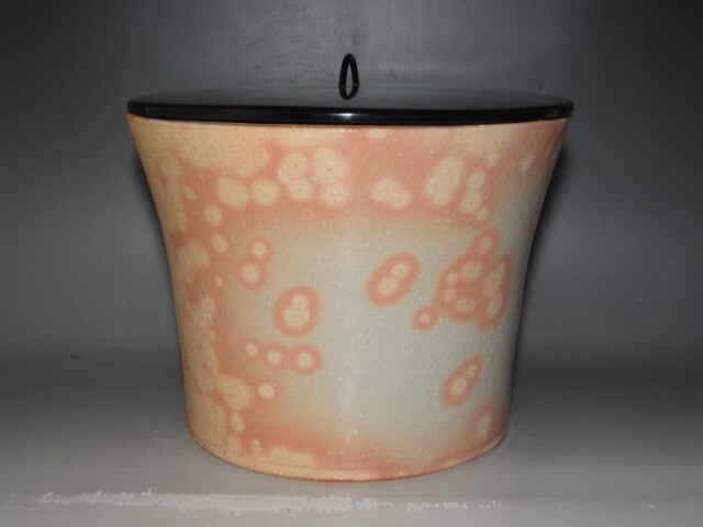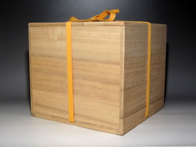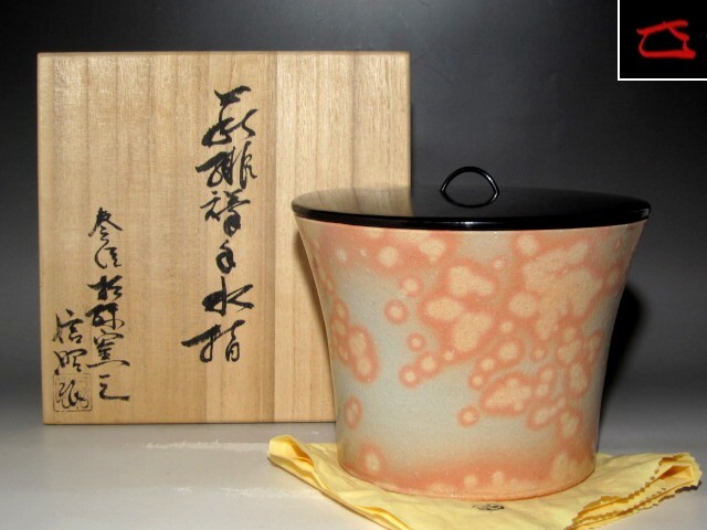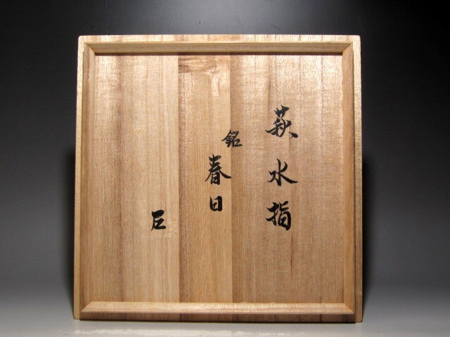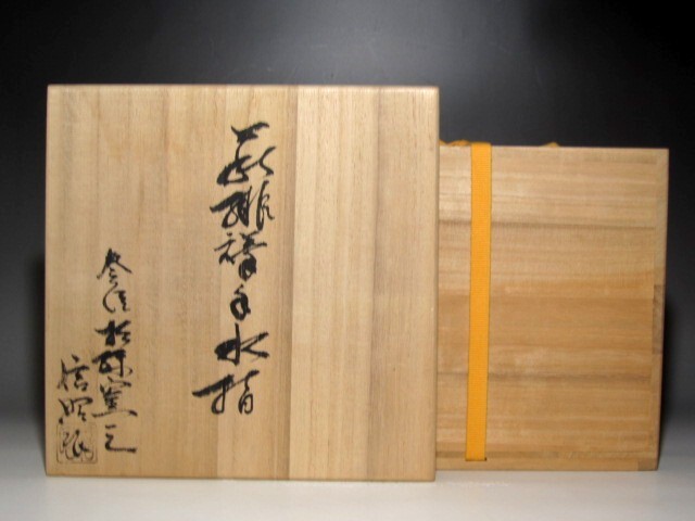 春信松緑窯、大和信昭作の萩水指「春日」です。 素晴らしい姿の、大変雰囲気の良い作品です。 蓋裏に表千家十四代而妙斎の花押があります。 サイズ 直径20cm/高さ17.5cm(多少の誤差はお許しください) 状態 一見して疵やヒビ・直しは見られません。 骨董品という事をご勘案頂き、時代経過のスレや、小さな傷がある場合があるかもしれませんのでご承知置きください。 | |||