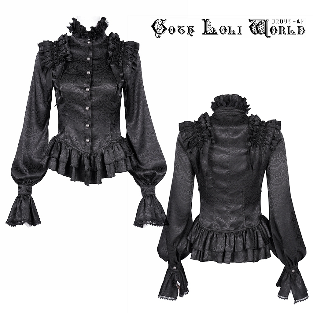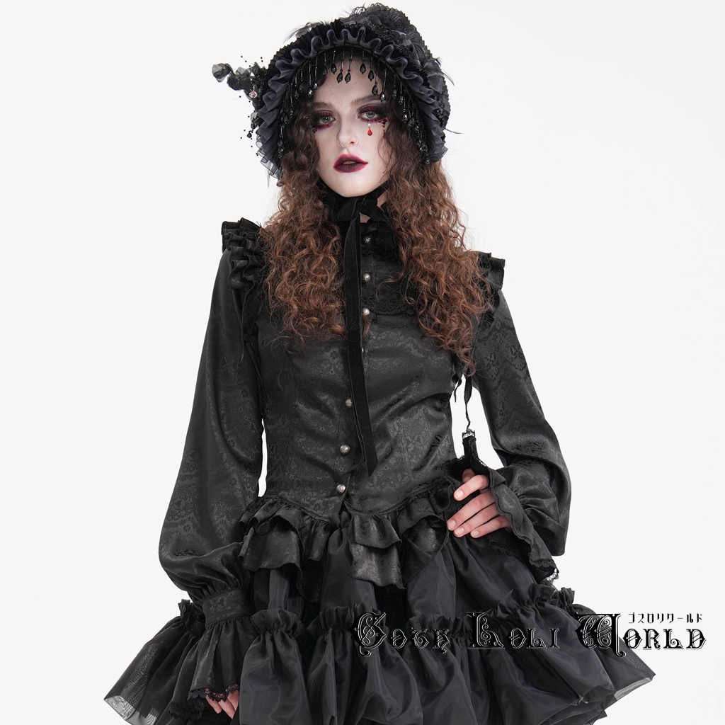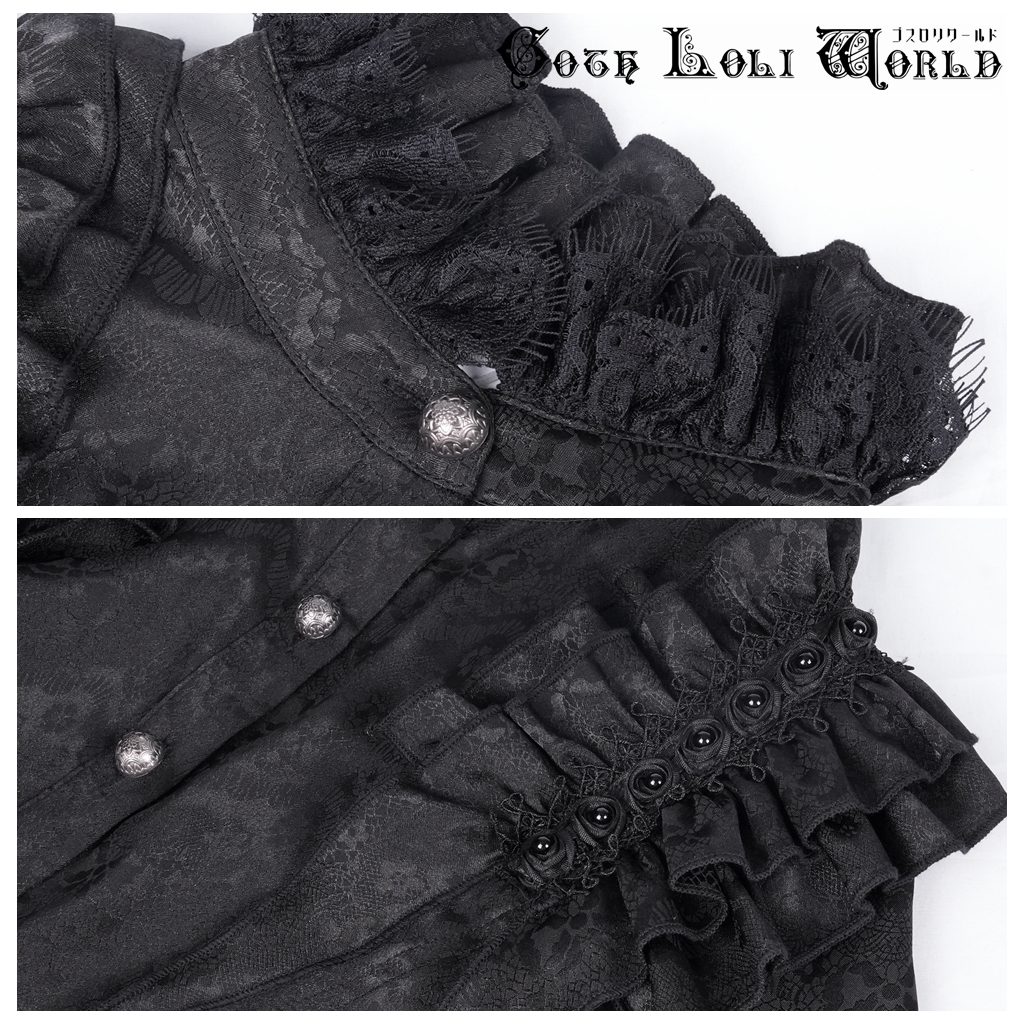 SHT122-S フリルヘムキャンディースリーブスタンドカラーブラウス 黒色 ゴスロリワールド ゴシック パンク ロック ロリィタ ビジュアル系