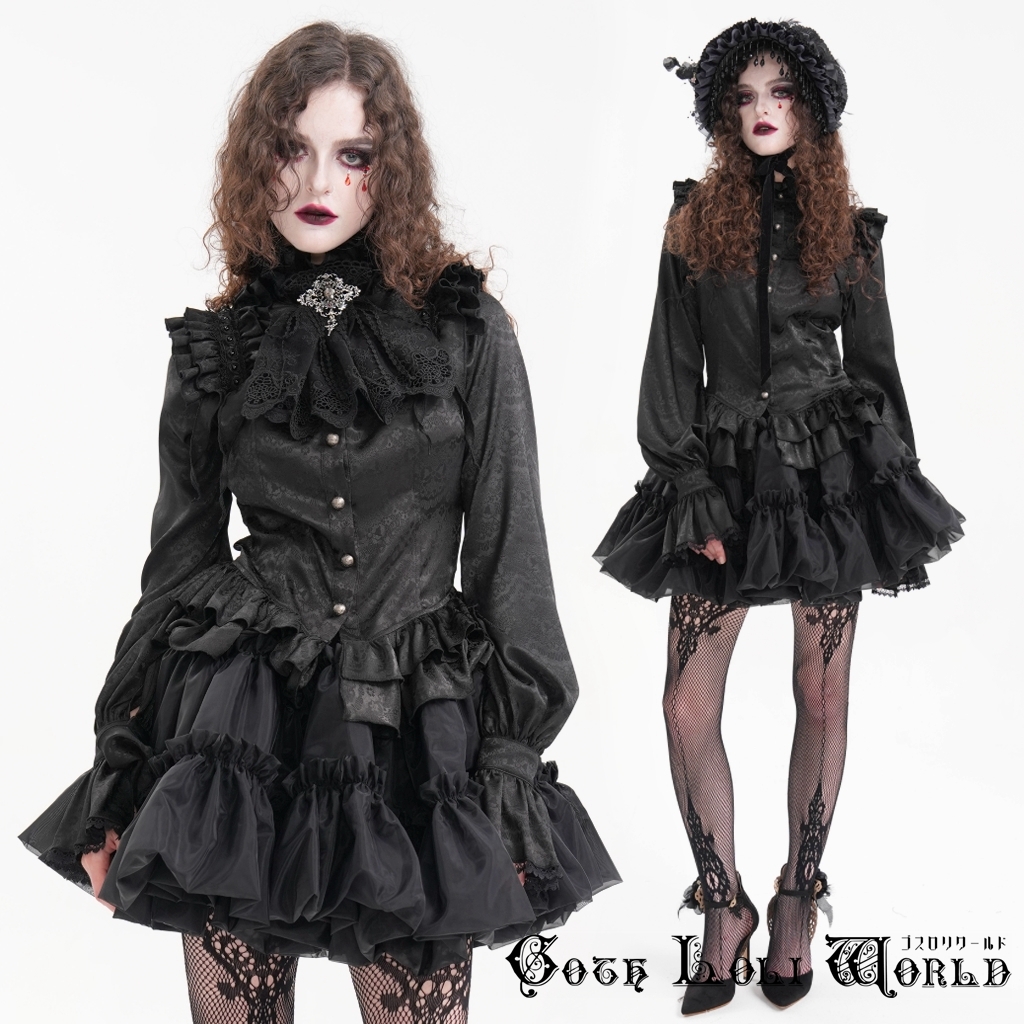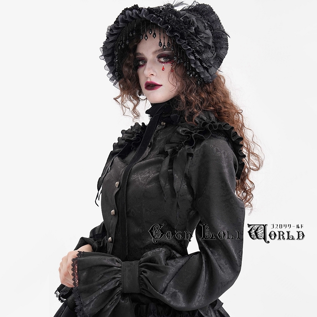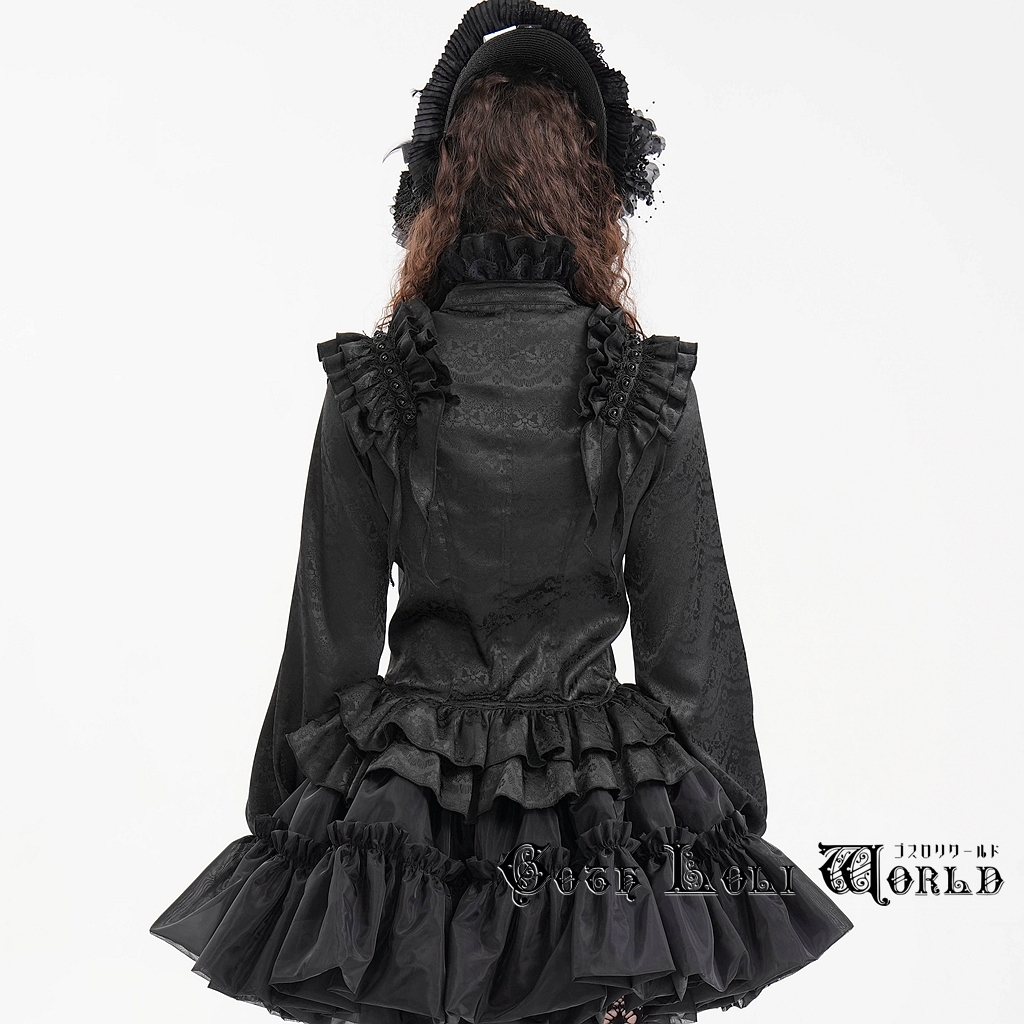 SHT122-S フリルヘムキャンディースリーブスタンドカラーブラウス 黒色 ゴスロリワールド ゴシック パンク ロック ロリィタ ビジュアル系