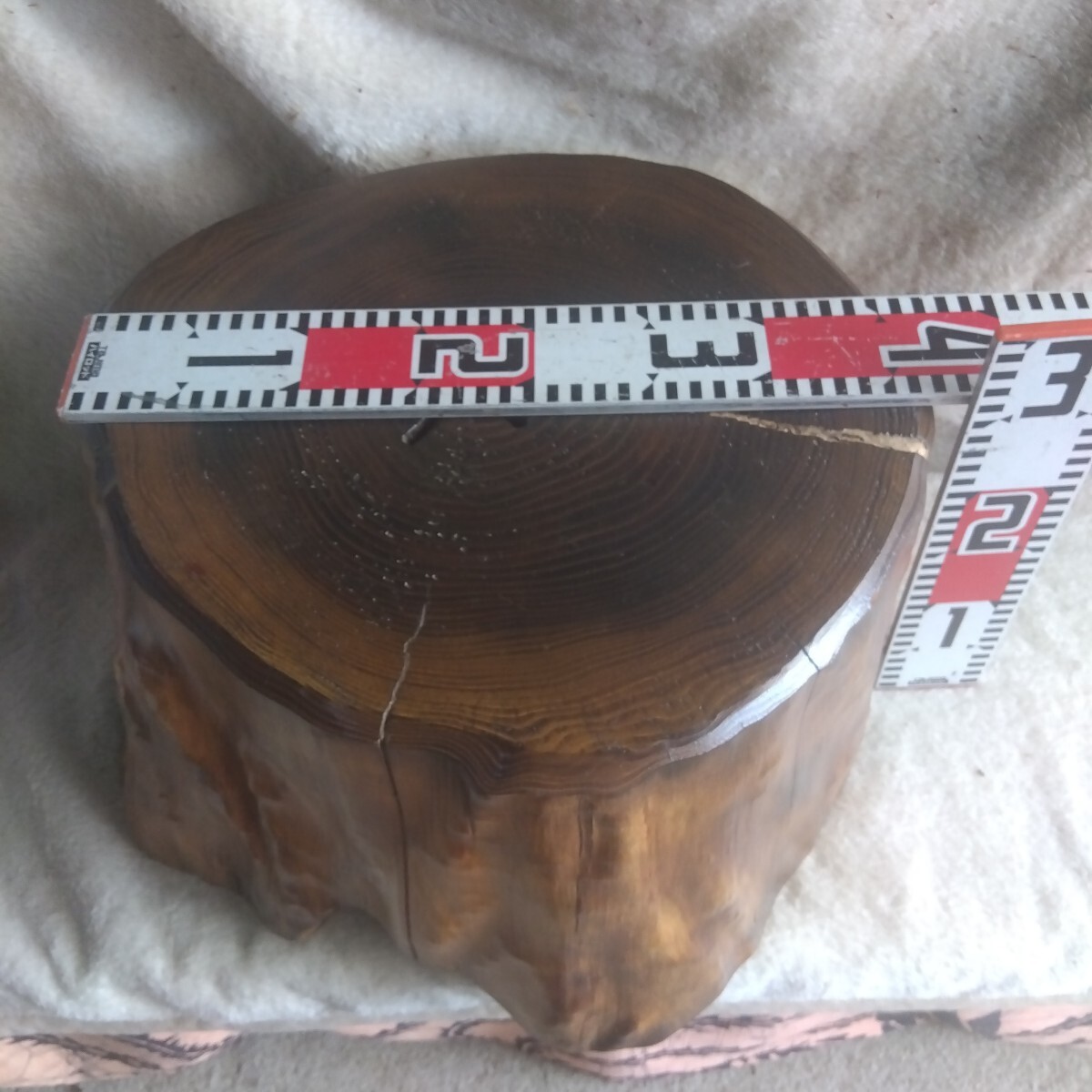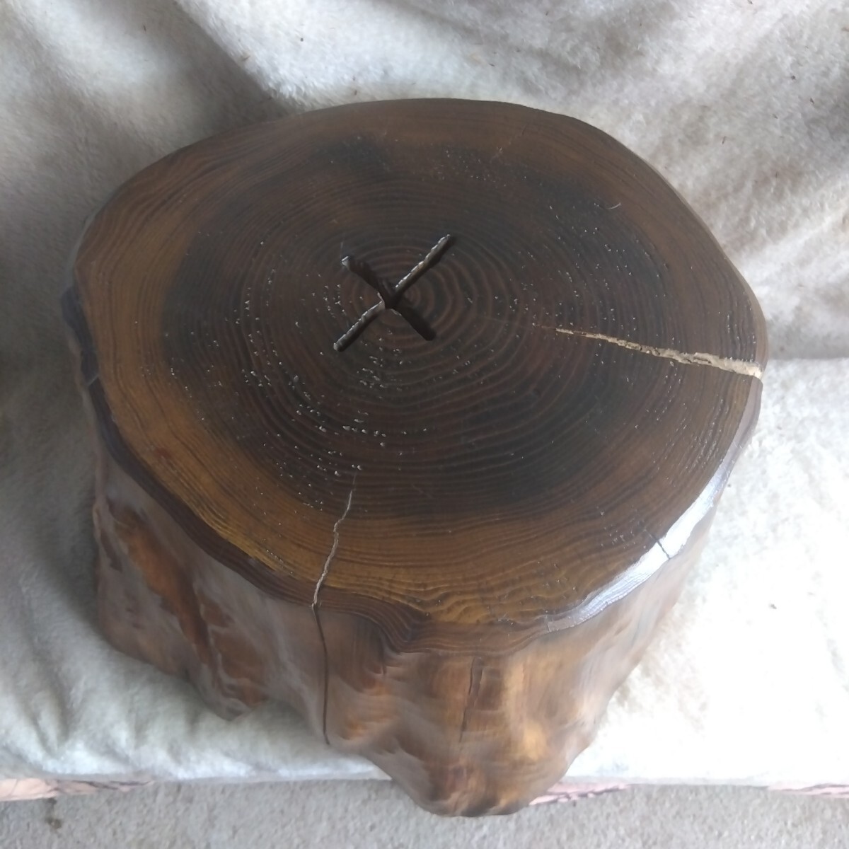 山林整備で倒した杉材を輪切りにした品物に成ります。均等では有りませんし、虫食い穴有ったりします。多少ガタツキあったりします。全体を研磨して見栄え良くして有ります。焼入れ後外部木材保護塗料を数回塗布して有りますから、屋内でも屋外でも良いかと思います。尚、初出品時より経過と共にひび割れ出た部分木工パテで補修しました。尚、環境の変化で呼吸してますから、ヒビ部分微妙に開いたり、閉じたりしてます。画像からご判断、ご納得出来る方居ましたら宜しくお願いします。また、自然木特有の特性で今後も出る可能性も有りますし、ご購入時には多少表状変わってたりしますから、ご理解、ご納得いただける方にお願いします。アイデア次第でお使い下さい。発送はおてがる配送の120サイズに成ります。尚、金、土、日、祝日はフリーマーケットやハンドメイドマーケット出店の場合、翌日の発送に成りますが、即決価格ですから、タイミングみてご購入いただければ、スムーズな発送出来ます。宜しくお願いします。ありがとうございます。