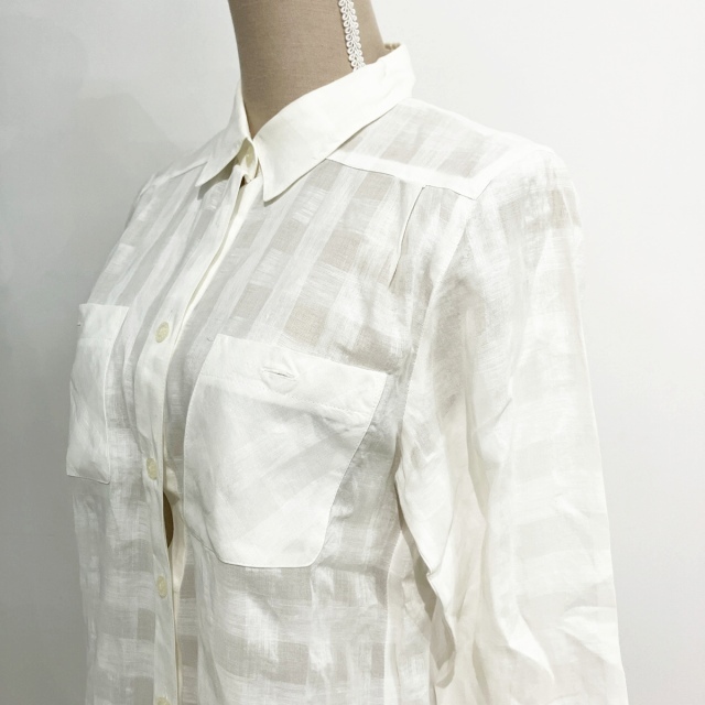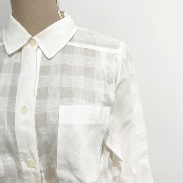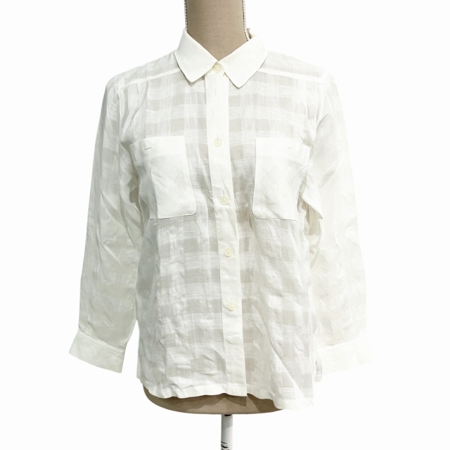 レリアン Leilian シャツ ブラウス チェック 長袖 白 ホワイト 9 約M ■GY09 レディース
