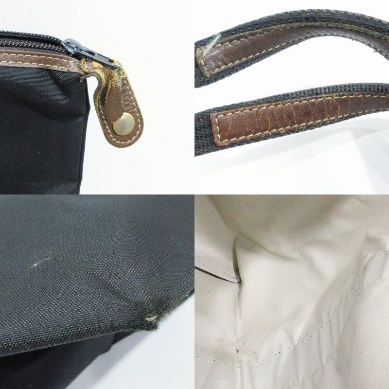 【状態】この商品には下記のようなダメージがあります。 ・クラッチバッグと本体の裏地に薄い汚れ、若干の擦れ ・持ち手やレザー部分に擦れがあり、ファスナー引手のレザーが擦り切れています。 ・四つ角に擦れによる先端の小穴、多少の汚れ ※全体的に中古品としての使用感と上記のようなダメージがありますが、通常使用には支障のない商品です。掲載写真や記載内容をご確認いただき、ご理解の上ご購入ください。