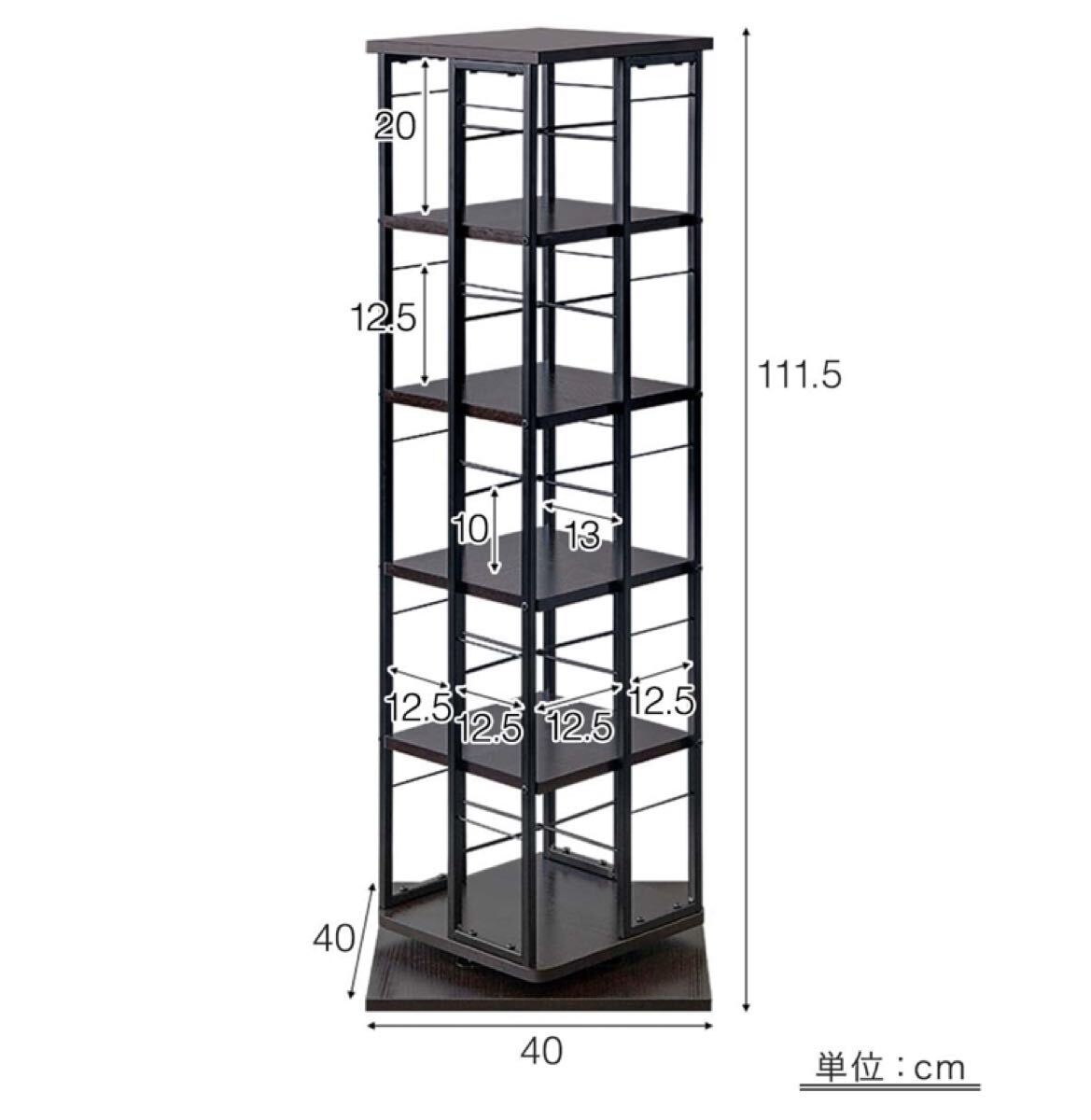 未開封品 ottostyle 回転式本棚 5段 幅40×40cm 高さ111.5cm ダークブラウン 4面 360度回転 収納 コミックラック 棚 回転棚 スリム 大容量