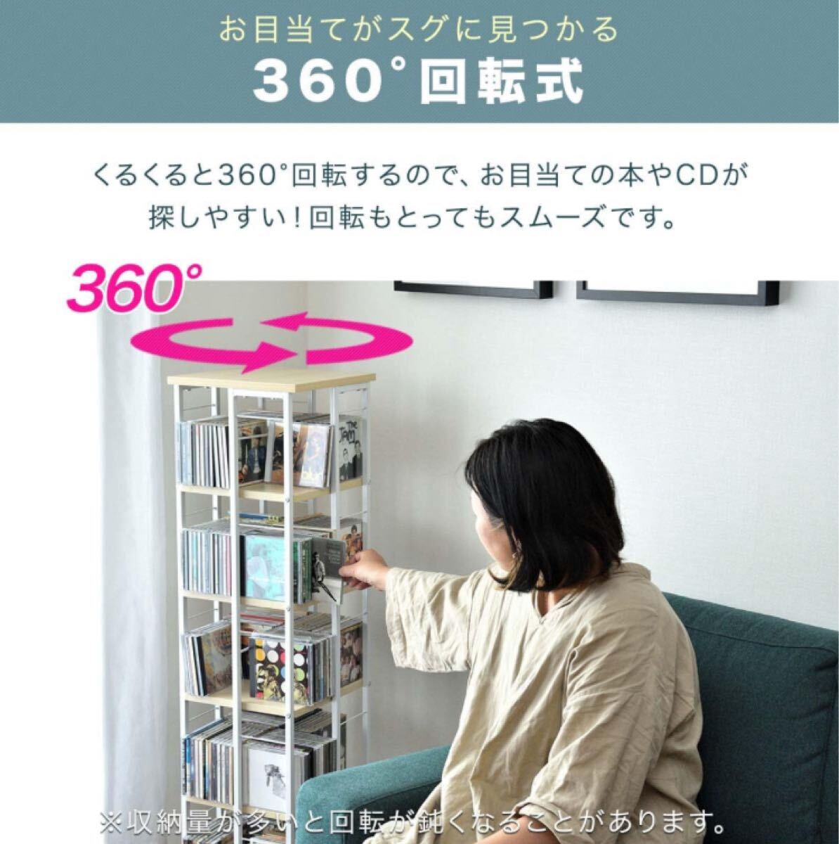 回転もとってもスムーズ。簡単にくるくると360°回転するので、お目当ての本やDVDが探しやすいです。